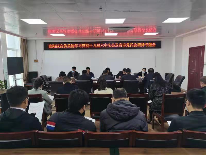 11月14日,淮阳区委宣传部组织召开全区宣传系统会议,传达学习《中国共产党第十九届中央委员会第六次全体会议公报》,并结合省委宣传部12日晚召开的学习宣传贯彻党的十九届六中全会精神电视电话会议的要求,就如何做好党的十九届六中全会会议精神宣讲宣传工作进行安排部署。