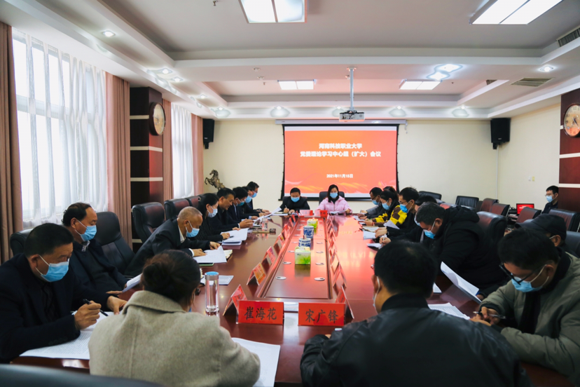 11月15日下午,河南科技职业大学召开党委理论学习中心组(扩大)会议,集中学习传达贯彻党的十九届六中全会精神。
