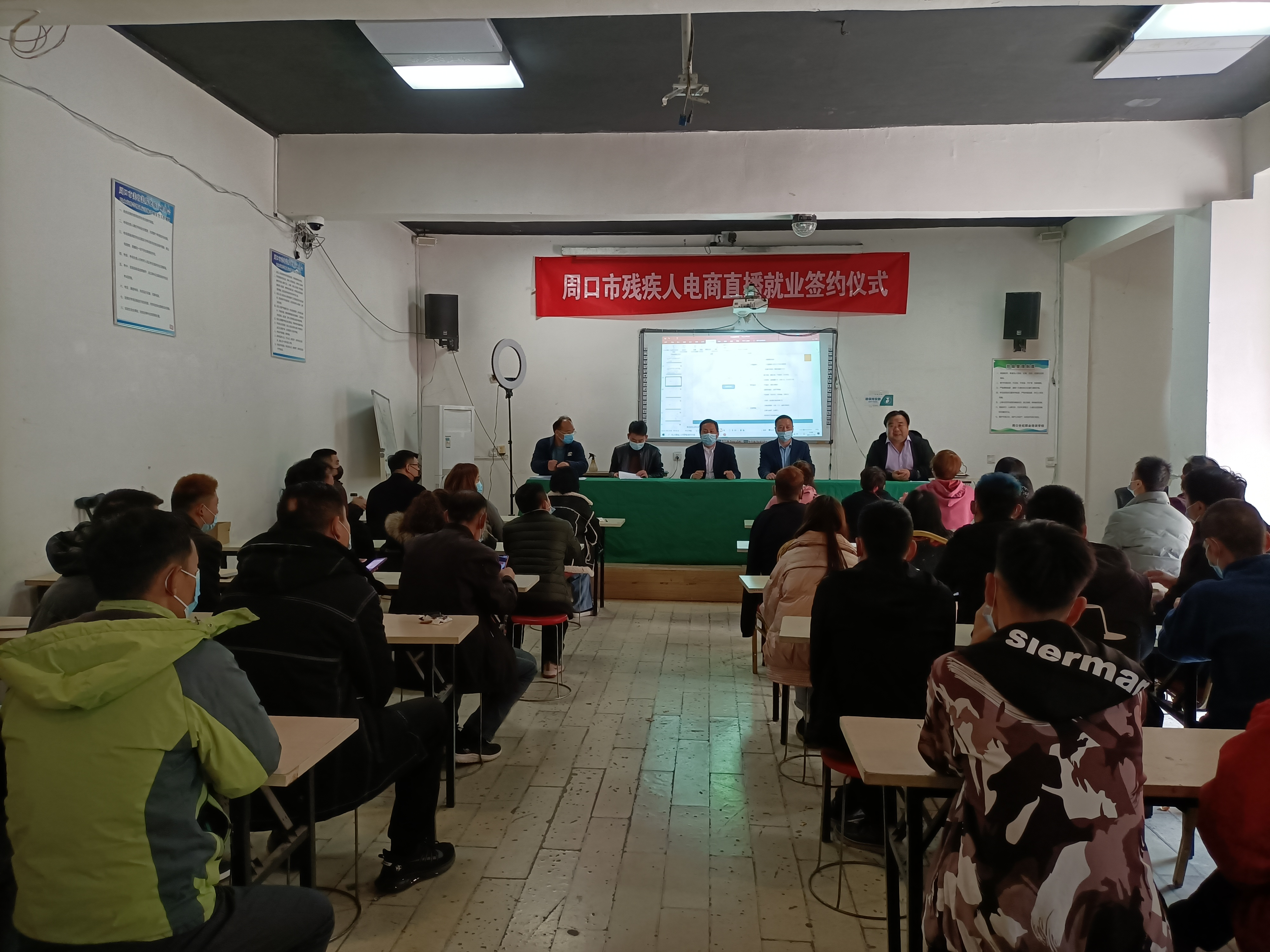 11月16日,我市举行残疾人电商直播就业签约仪式,即将结业的市残疾人电商(直播带货)培训班的学生按照自愿的原则与周口市掌柜食品有限公司签订了就业意向合同。