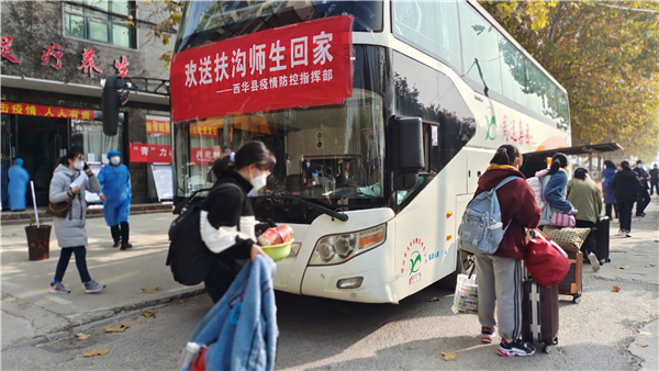 在西华隔离的100名扶沟师生 迎着暖阳踏上回家路
