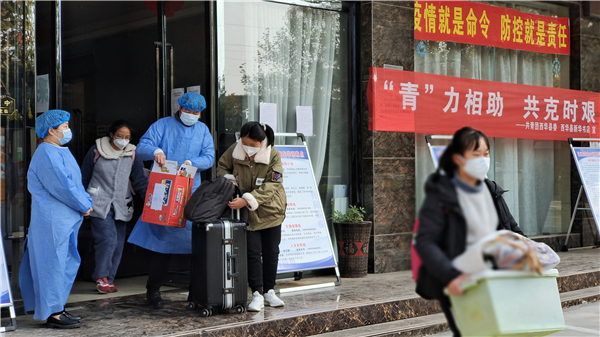 “同学们,请排好队,间隔1米线,先把自己的物品放在大巴车行李箱里,然后依次有序登车。再过一个小时左右,你们就可以回到自己的家中了,一路平安……” 11月17日下午,在西华县医护人员的有序组织下,来到西华县集中隔离10天的100名扶沟师生,分别在艾尚假日酒店等两处集中隔离点登上大巴车,迎着冬日暖阳踏上回家的路。
