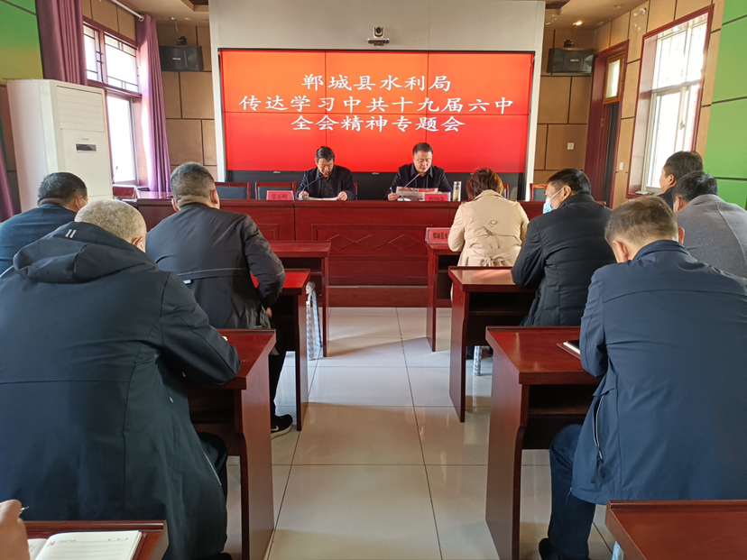 11月18日上午,郸城县水利局召开党的十九届六中全会精神专题学习会议,传达学习党的十九届六中全会精神,研究安排全县水利系统贯彻落实工作。水利局全体干部职工参加学习。