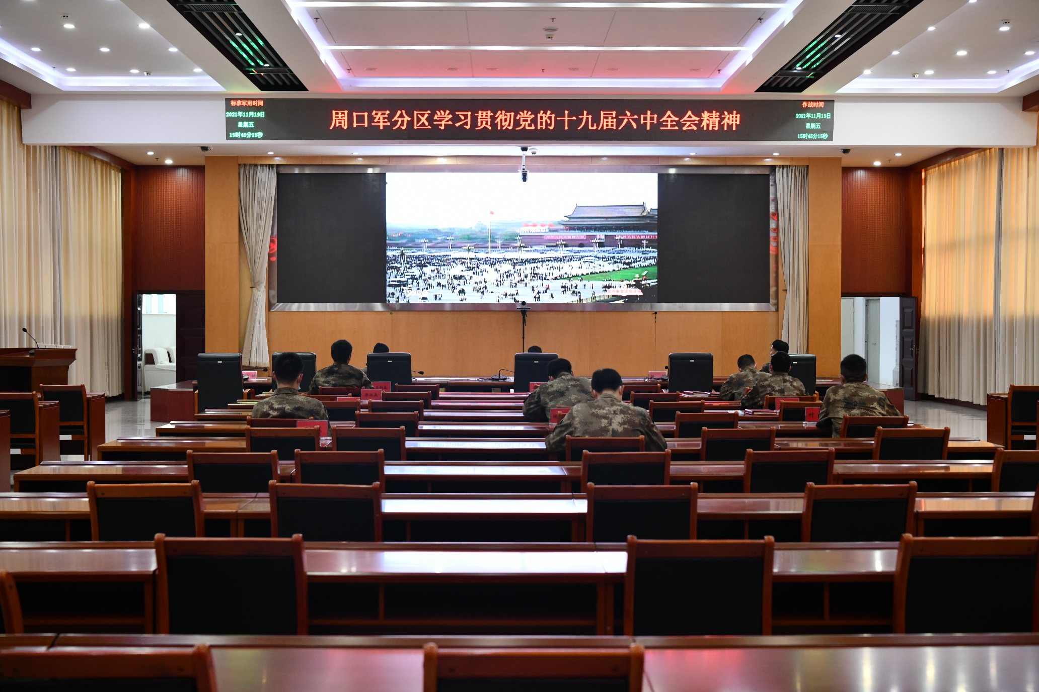 党的十九届六中全会召开以来,河南省周口军分区以多种形式组织贯彻学习全会精神。11月19日,周口军分区大校司令员汤维政主持专题党委常委会学习贯彻全会精神,机关组织全员观看全会精神授课,各党小组结合党日活动组织全会精神学习交流活动。