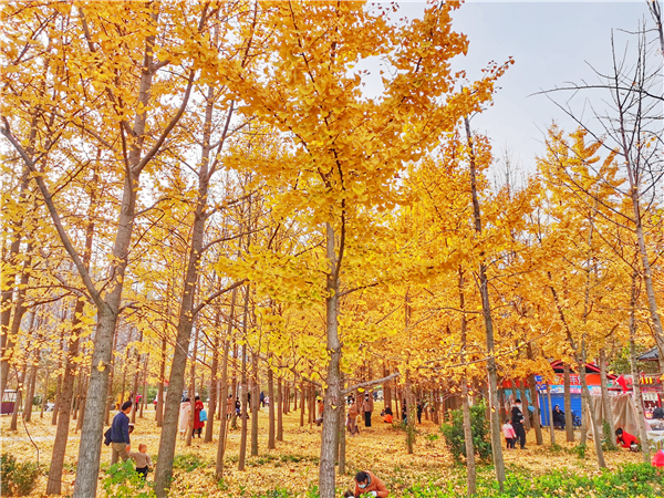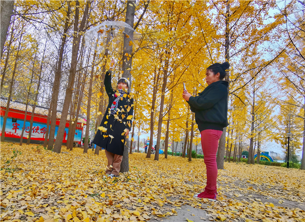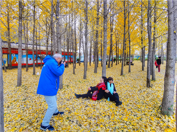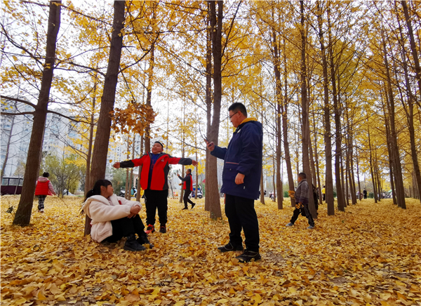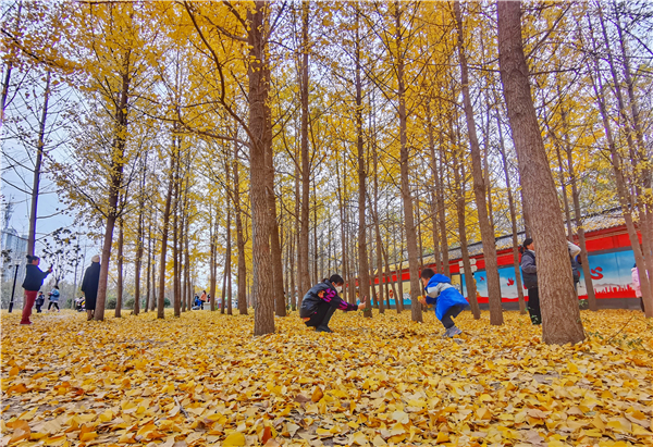11月21日中午,开发区人民广场的银杏林内笑声不断,不少市民在此拍照、玩耍,尽享初冬美景。