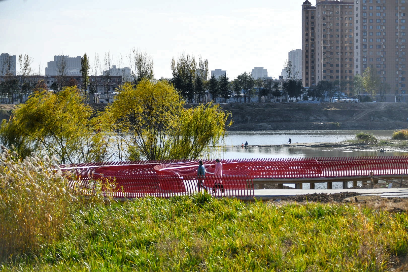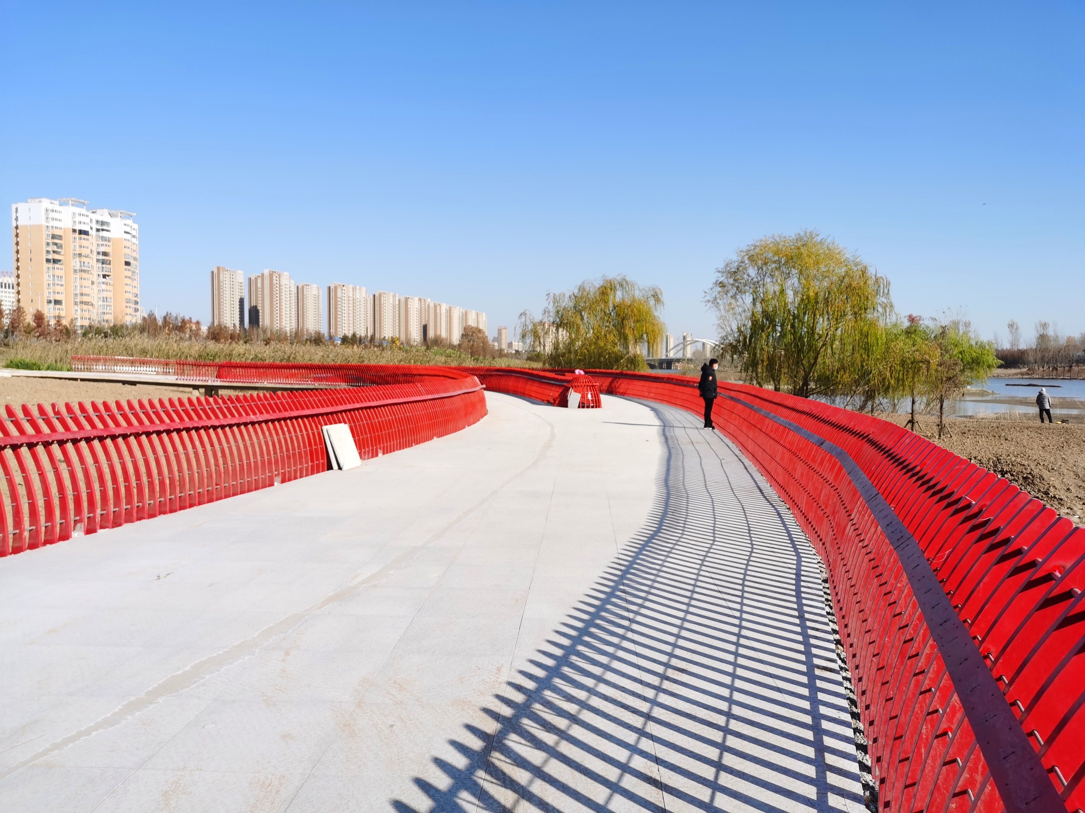 11月22日,沙颍河周口大道至八一大道段北岸景观改造提升工程EPC项目的亲水平台主体已建成,和沙颍河岸的景观融为一体。