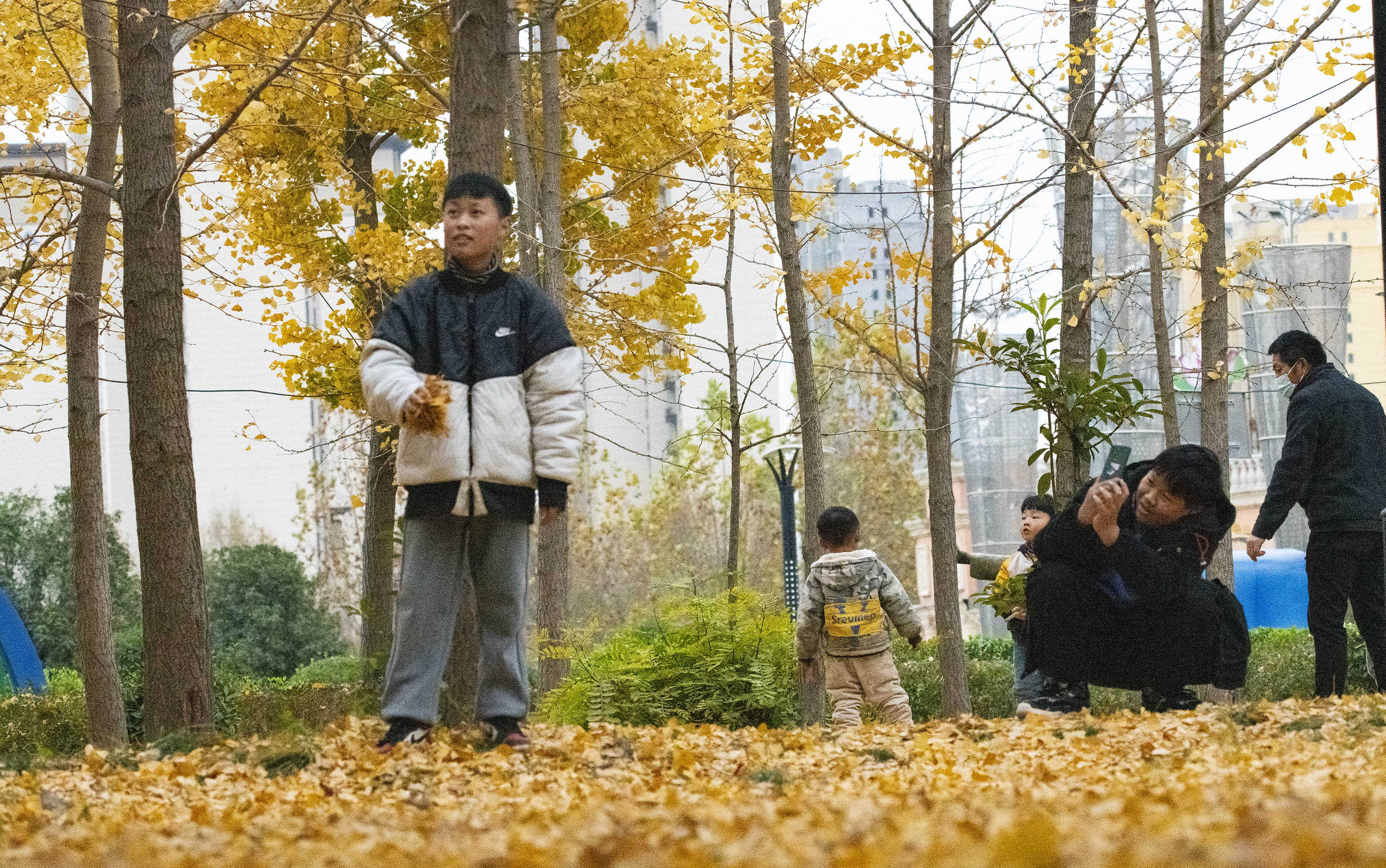 今天是二十四节气中的小雪时节,意味着天气进入寒冬。冬天让银杏树一夜之间披金流彩,给中心城区披上金色的盛装。记者在中心城区的市植物园、开发区人民广场、社区家园、铁路公园看到,在金色银杏树的映照下,处处如油彩画一样美丽,孩子们在银杏树下尽情地玩耍。③9