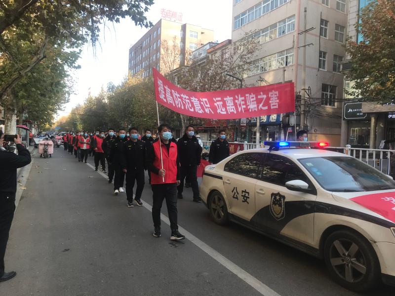 活动中,参加活动人员身穿反诈宣传红马甲、佩戴好口罩,落实好一米线疫情防控要求,沿新华路、育新路等城区主干道开展大规模的“游行式”反电诈宣传,宣传车沿路播放预防电信网络诈骗常识;游行队伍沿途向过往群众发放防范电信诈骗宣传资料,捂好辖区人民群众的“钱袋子”,不让违法犯罪人员“钻空子” ,达到使反电诈意识做到家喻户晓、入脑入心的宣传目的。