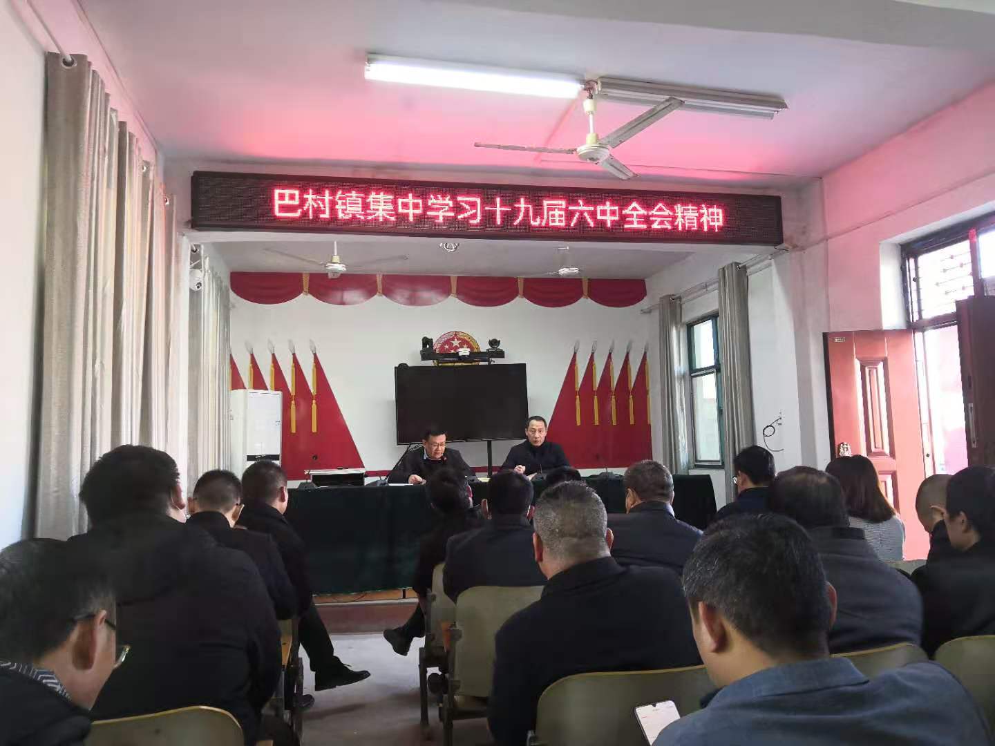 党的十九届六中全会召开期间,巴村镇党委政府连续组织党员干部收听收看大会实况和相关新闻报道。11月23日,巴村镇又按照市、县指示精神召开会议,专题学习《中国共产党第十九届中央委员会第六次全体会议公报》,镇政府机关全体干部、职工、各村党支部书记、镇直各部门负责人和各中小学校长150余人参加学习。镇党委书记刘涛围绕一个“根本问题”、两个“确立”、三个“需要”、四个“必须”、五大“历史意义”等方面进行了详细解读,并对全镇各基层支部认真学习贯彻十九届六中全会精神的步骤和组织方法作了具体安排。