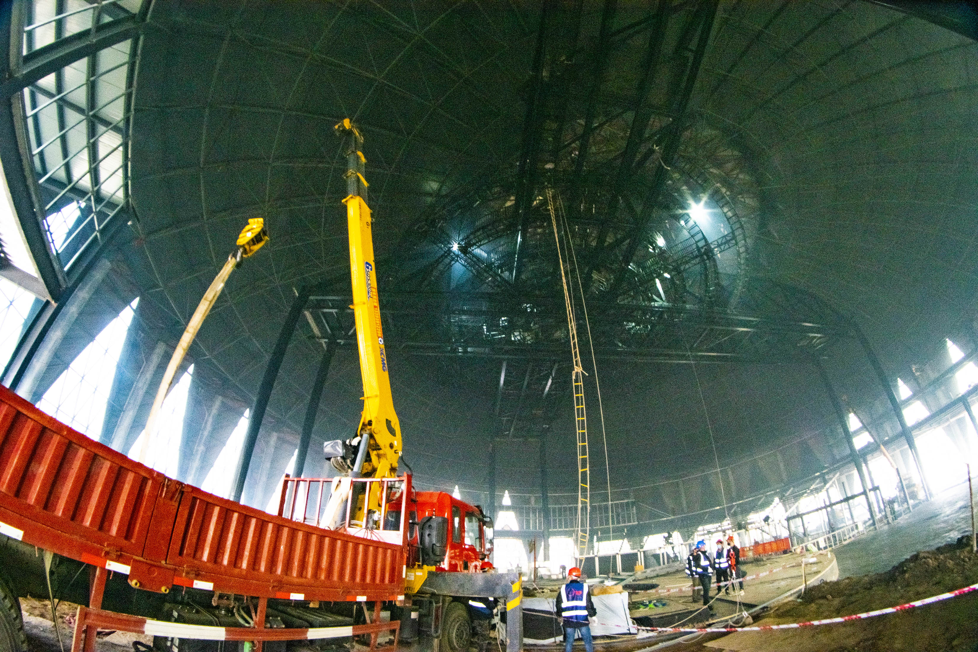 11月26日,记者在周口森林野生动物世界看到,经过近3个月的施工,中国杂技春晚剧场空中舞台建设进入设备安装阶段,二楼的看台及走廊、一楼地平铺装、一楼看台安装都在紧张施工中,百余名工人昼夜施工,力争到2022年1月15日将剧场整体建成,交付使用。