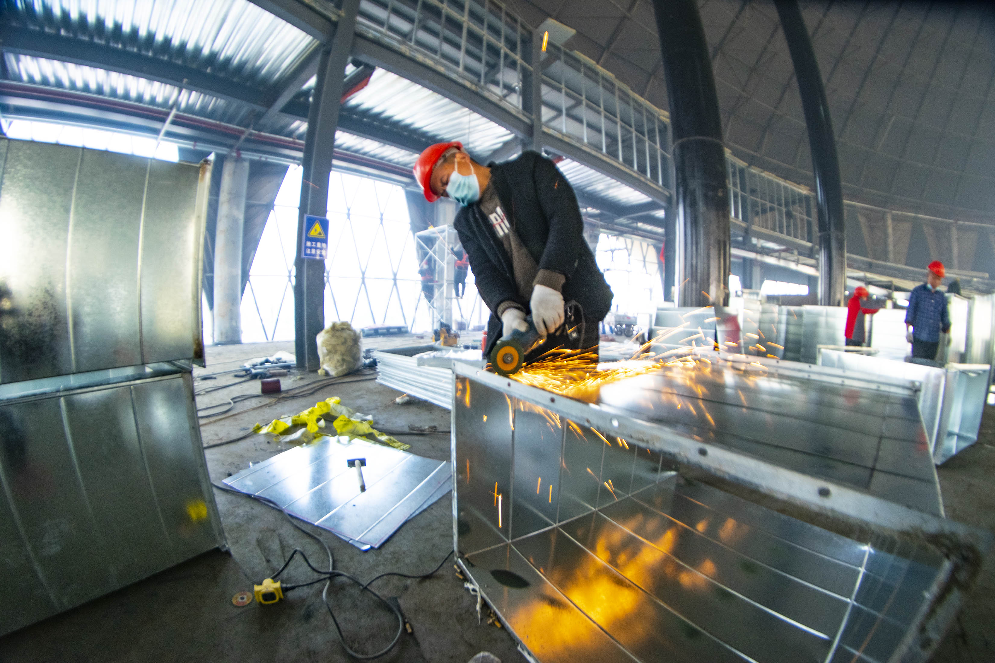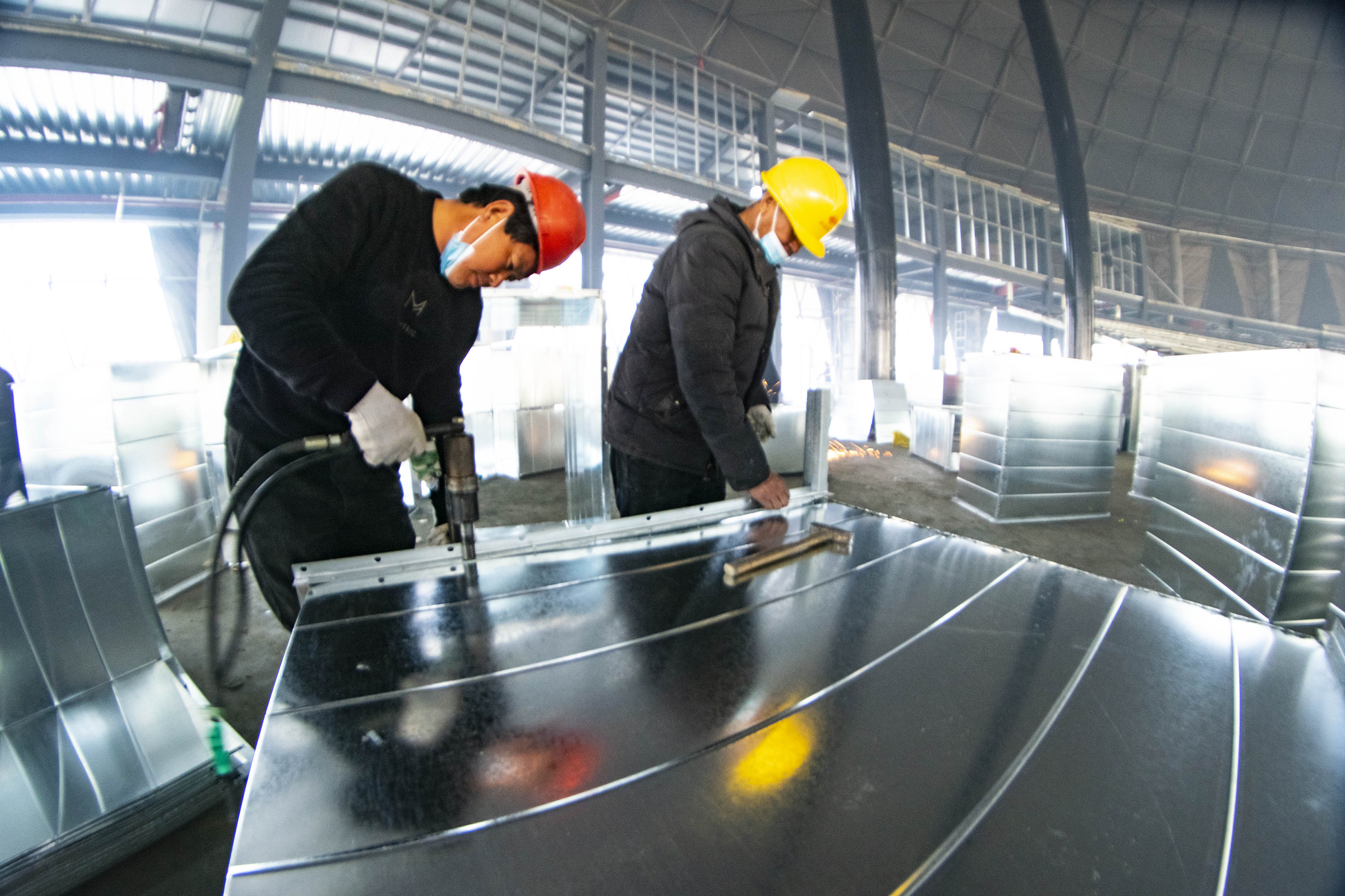 工人们加工设备