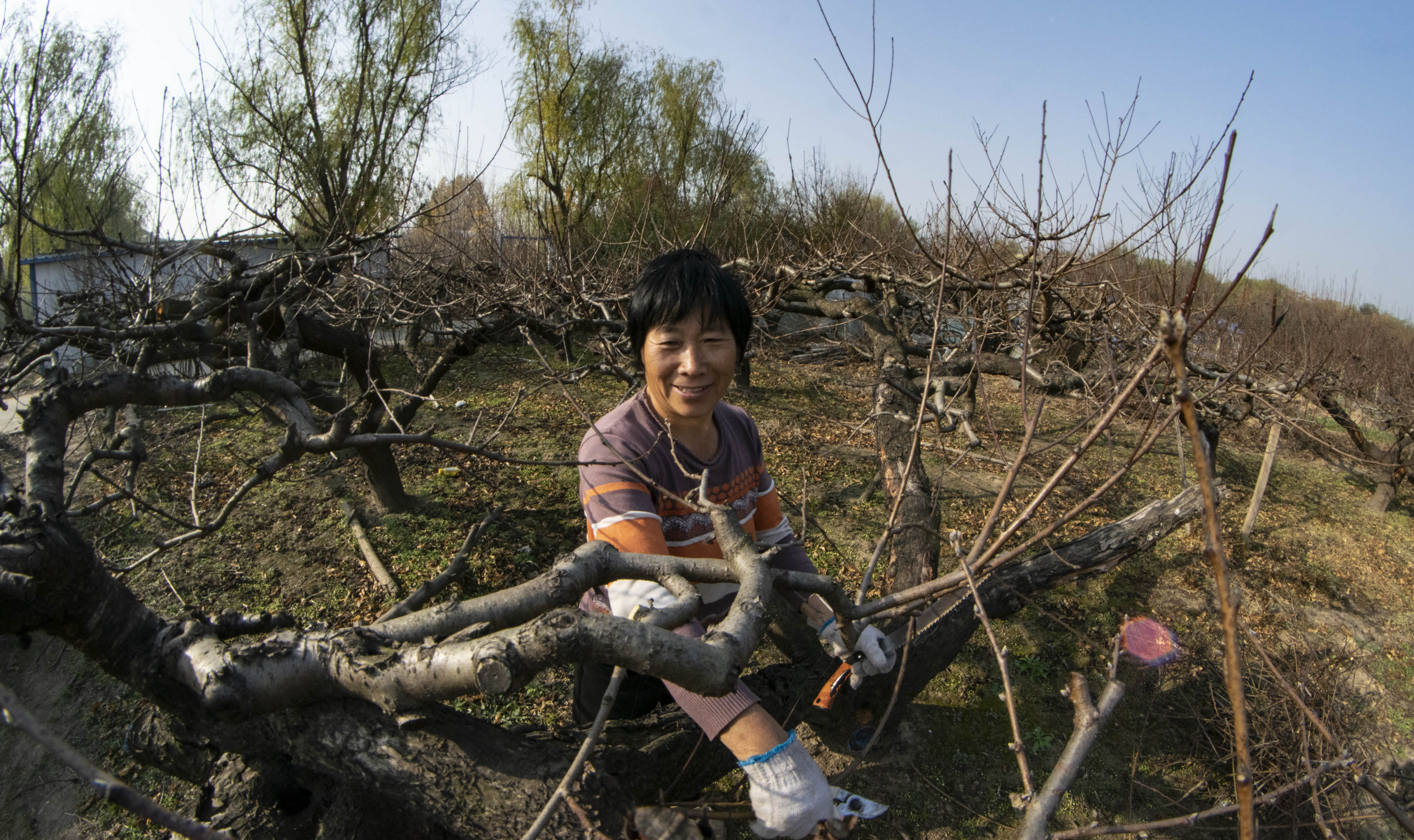 11月26日上午,在川汇区园艺中心的六百亩果园里,果农们忙着为果树修剪果枝。冬季,修剪果枝是至关重要的工作,决定着明年的收成。剪枝、施肥、浇水……整个冬季,果农们要全身心投入到养护果树的工作中。②7