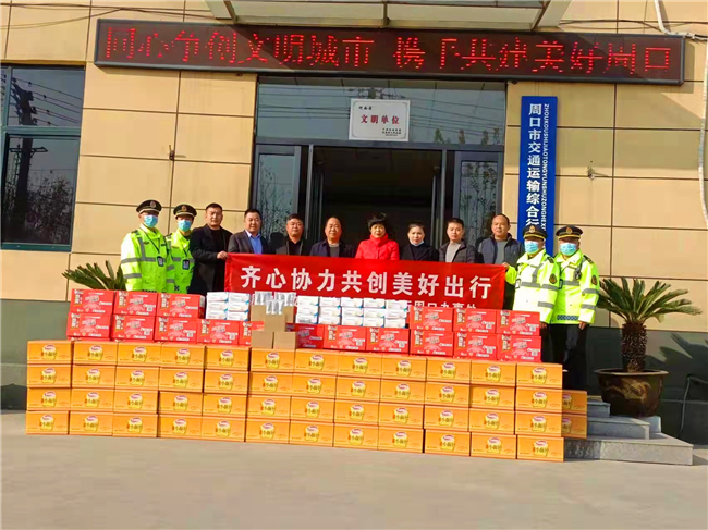 11月26日,周口凯顺党支部书记、中原众恒集团副总经理谢华、滴滴出行官方办事处李圆圆及业务部张高飞、众恒网约车田磊等一行向周口市交通执法支队送去方便面、面包、口罩、免洗手消毒液等慰问品。②6