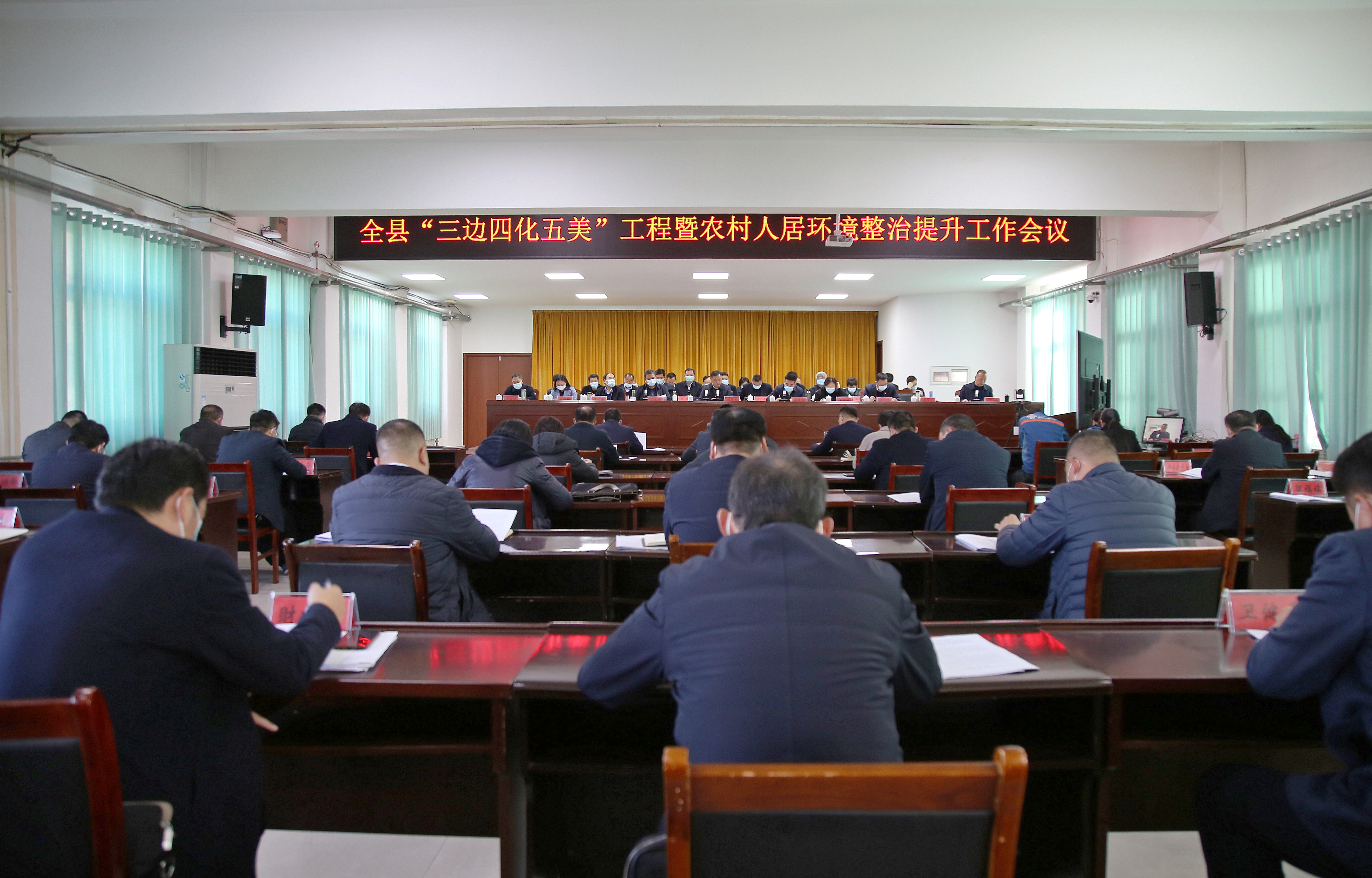 县委副书记丁永华传达省市农村人居环境整治工作会议精神;副县长严坤宣读《全县“三边四化五美”工作方案》。