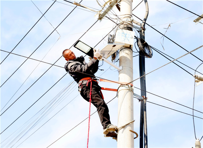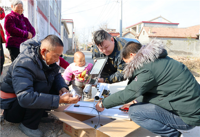 “俺村大街上有路灯了,这些小路晚上有点黑。特别是现在家里老人小孩多,一到晚上出门很不方便。海岗、万顺还有少尉听说之后给俺买了路灯,你看看,还找了老师儿(安装师傅)现场给俺安装好,立即就亮了。”今年70多岁的于老汉听说村里装路灯,他高兴不已,正值中午时分,他端着饭碗站在线杆下当“监工”,一直看到安装师傅把一个个路灯装上电线杆、调试点亮,他才离去。