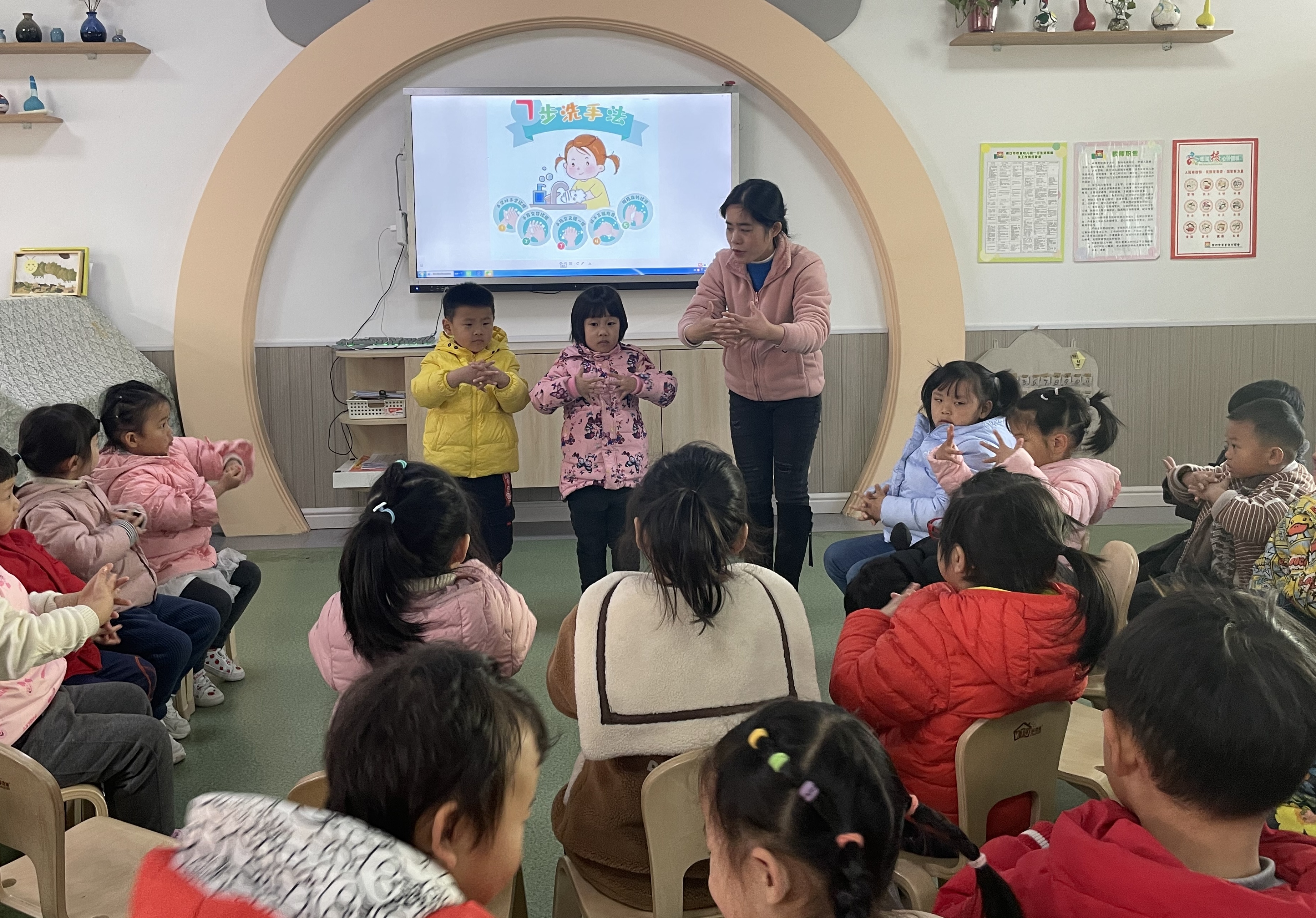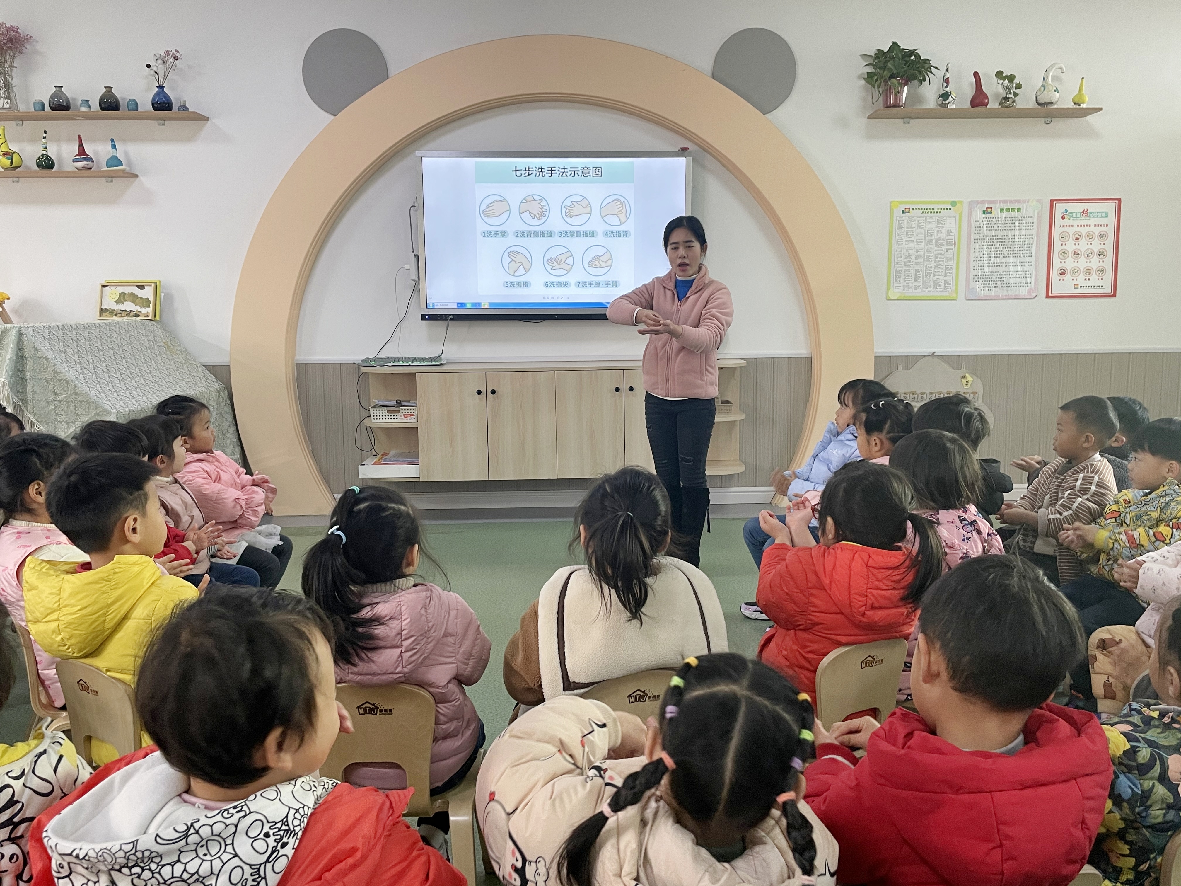 12月6日,市直幼儿园老师在给孩子们讲解洗手方法,让他们养成良好的卫生习惯。为加强学生的安全健康意识, 营造安全卫生的校园环境,市直幼儿园通过日常引导学生做好个人卫生等多种措施,严格落实校园疫情常态化防控,筑牢幼儿在校健康防线。③9