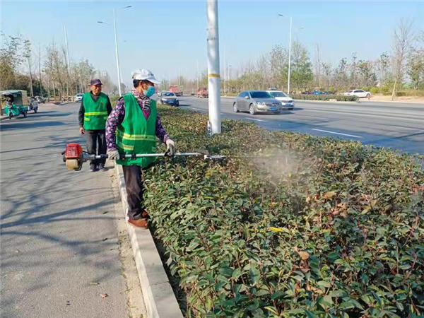 为助力文明城市创建,进一步提升道路绿化管养水平,近日,在中心城区太清路沿线,随处可见园林工人忙碌的身影,他们有条不紊地修剪绿篱、草坪、灌木造型,清理枯枝干叶和垃圾杂物,为园林景观植物进行“梳妆打扮”,给冬日的城市增添一道温暖亮丽的风景。