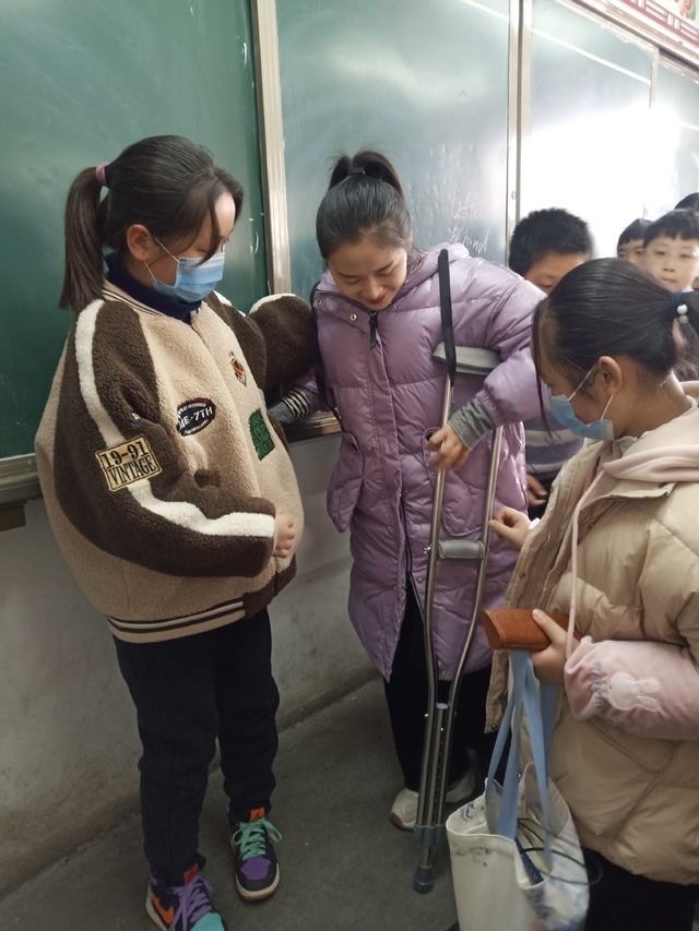 “林老师特别敬业,心里总是装着学生。这次看到她拄着拐杖上课,我们都很心疼,也深深感动。”五年级二班学生张雅琪说,她总是抢着帮林老师搬凳子、送作业,还会小心翼翼地搀扶她,就连上课也比以前更认真了。