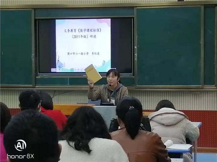 为促进教师专业成长,使《数学课程标准》内涵运用于每位老师的教育教学中,周口市六一路小学数学组日前开展教师大讲堂活动。本次活动根据数学的实用性,说明了期中所增减的内容,让老师耳目一新。学校校长左健参加学习。(周口市六一路小学 史小雨)