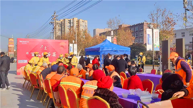 冬至当天上午,泰和城百货在广场上煮了一锅锅热气腾腾的饺子,为外卖小哥、孤寡老人、环卫工等送上一份温暖,让他们在寒冷的冬天感受到来自社会的关爱。活动现场暖意浓浓、其乐融融。泰和城的员工们连包带煮,动作麻利;被邀请参加饺子宴者相互谦让,秩序井然。面对送来的饺子,一位外地的外卖小哥发出感慨:“今天和大家一起吃饺子宴,让我感受到了周口这座城市的温情,仿佛冬天没那么冷了!”一位环卫工人说:“虽然天气很冷,但心里特别温暖。现在社会各界对俺们环卫工人的关心越来越多,俺工作起来更有干劲了!”②16