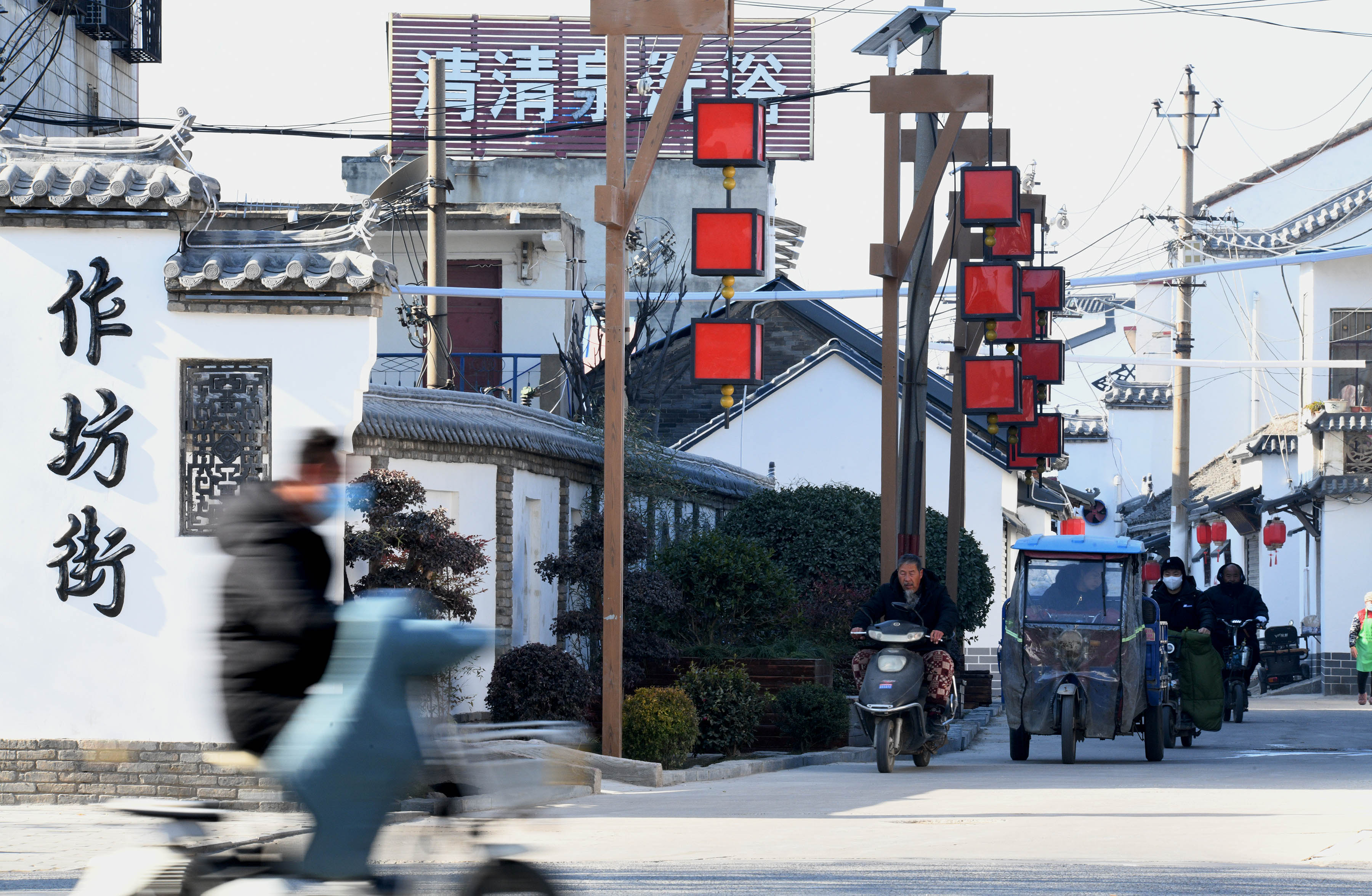 12月27日,市民骑车行走在作坊街。经过两个月的精心打造,中心城区作坊街改造于近日完成,它以历史文化街区的面貌呈现在人们眼前。记者在现场看到,200多米长的作坊街,沿街白墙灰瓦,重现昔日徽派风情,彰显了古街历史文化的厚重和沧桑。③5记者 梁照曾 摄