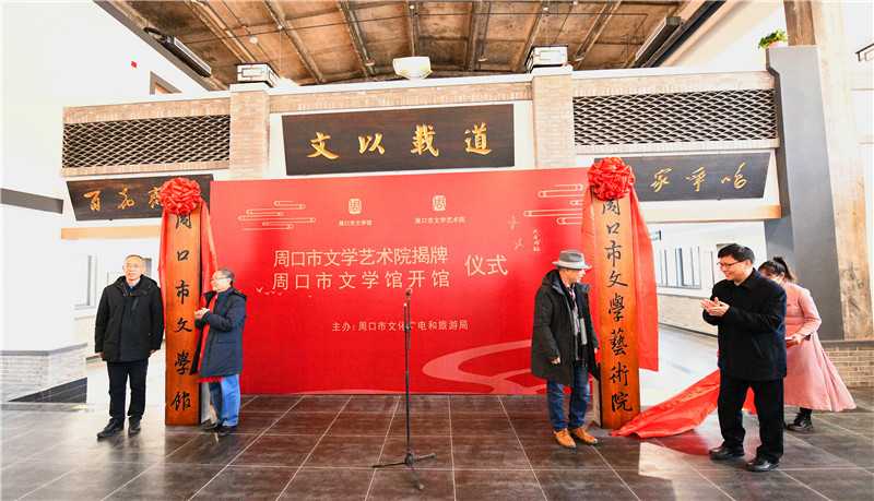 市领导王少青、梁建松和周口籍著名作家刘庆邦、墨白为市文学馆、市文学艺术院揭牌