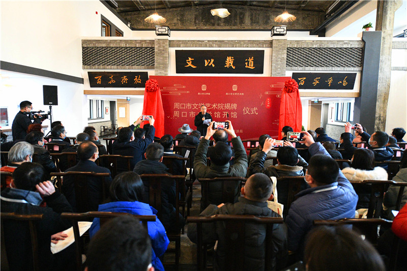 12月29日上午,位于周口市中州大道西侧铁路公园内的周口市文学馆开馆。据了解,周口市文学馆是在铁路维修车间的基础上改造而成,建筑面积2800平方米,主展区1600平方米,核心展区600平方米。文学馆系统地展示了周口文学的发展历史,收录了232位作者的简介及相关作品等,是2020年周口市重点建设项目。②15 周口日报·周道客户端记者梁照曾 摄
