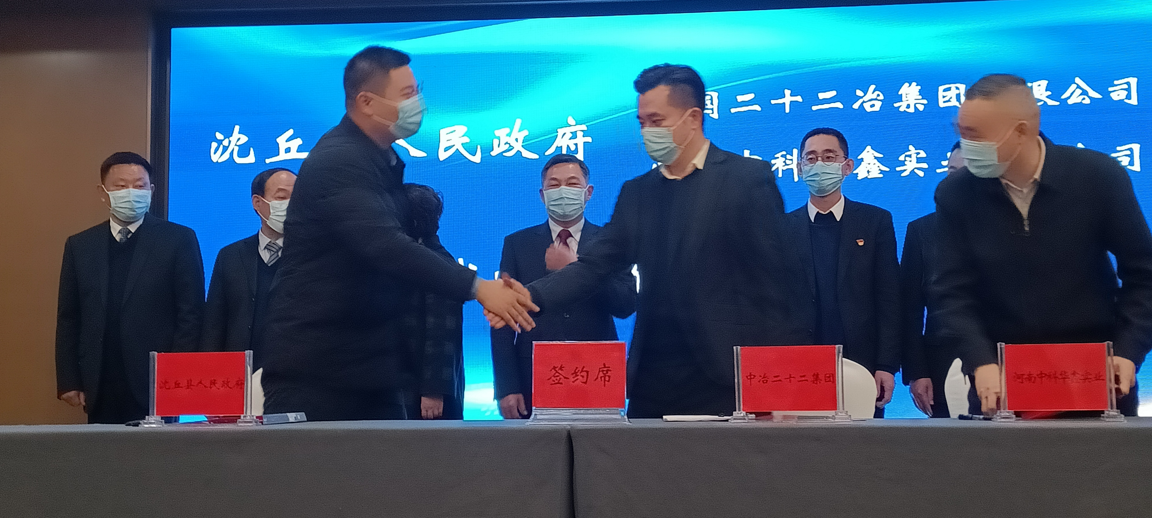 12月31日,沈丘县人民政府与河南建设集团、中国二十二冶集团有限公司华中公司、河南中科华鑫实业有限公司、和河南国土开发投资有限公司签约仪式在沈丘举行(河南国土开发投资有限公司进行网上签约),签约项目总金额达21.4亿元人民币。沈丘县委书记田庆杰,河南省建设集团党委副书记总经理李勤山,河南中科华鑫实业有限公司总经理周强,中国二十二冶集团有限公司华中公司书记董树林等有关人员,沈丘县四大班子领导参加签约仪式。