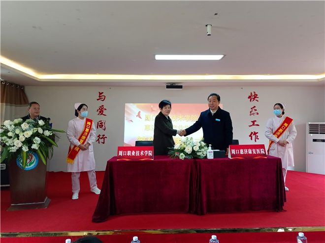 12月31日,周口职业技术学院惠济康复产业学院签约揭牌仪式在周口惠济康复医院举行。副市长秦胜军,政协副主席李应权,周口职业技术学院党委书记刘士欣、校长李清臣,周口惠济康复医院董事长、院长王希振出席揭牌仪式。