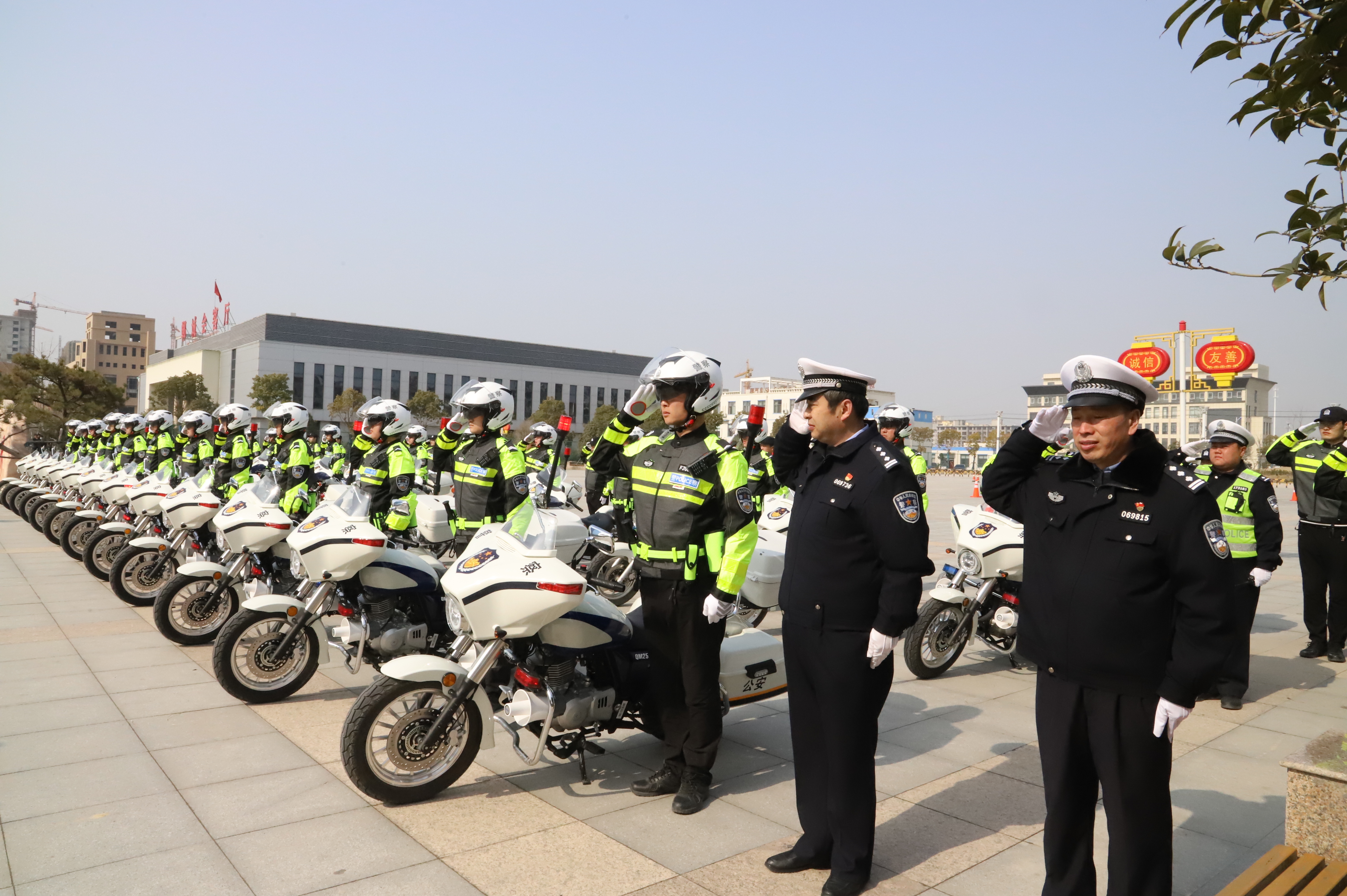 自2020年10月“铁骑队”上路以来,50名身着新式警用骑行服的铁骑交警便成为郸城街头一道亮丽的风景线。全队24辆警用摩托车,每辆摩托车安装警灯、警报器、喊话器,每车两名队员配备高性能骑行服、头盔、单警装备、对讲机、执法记录仪等装备,重点执行事故快处、执勤执罚、巡逻保畅、应急保障、重大安保等执勤任务。