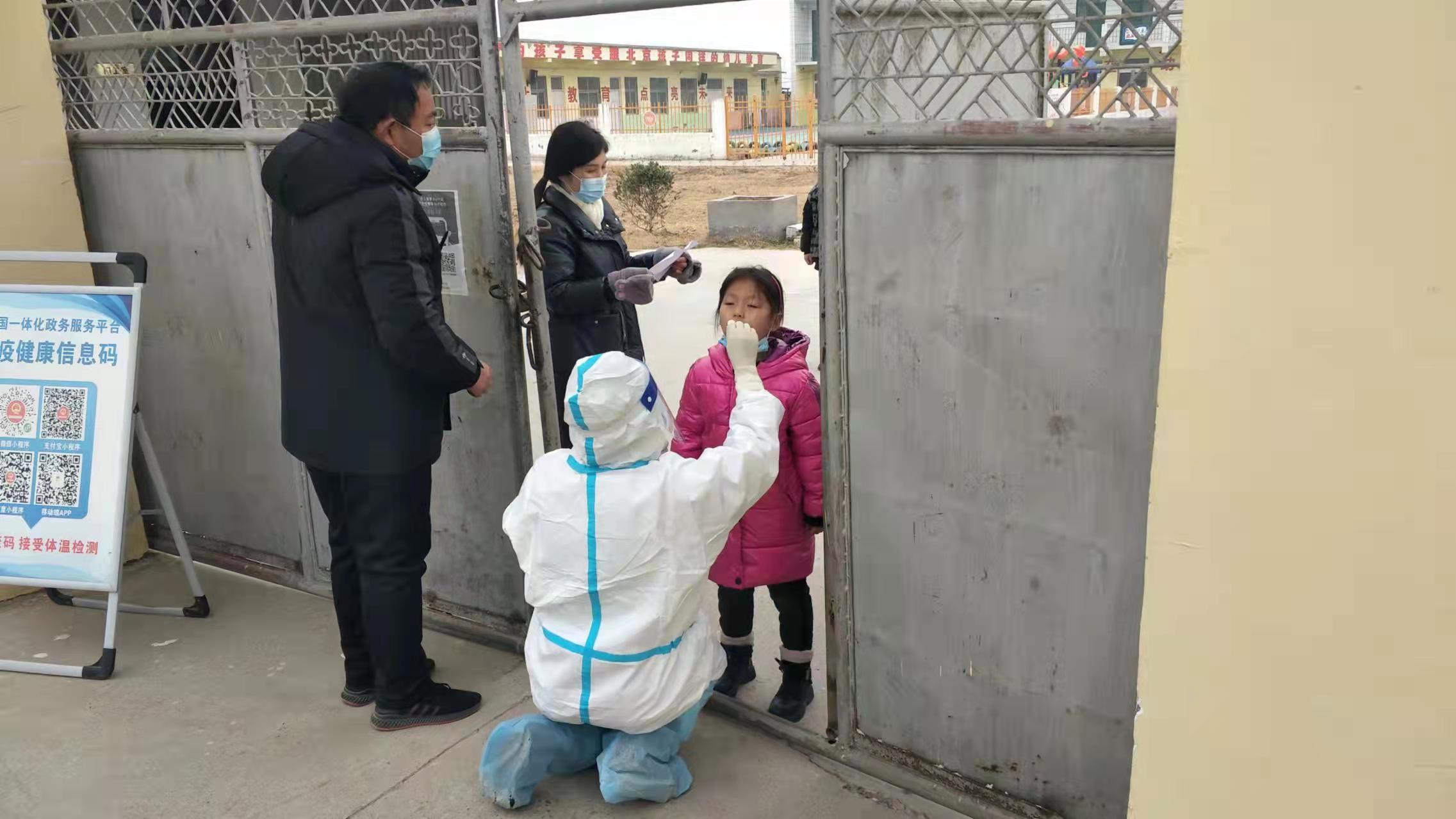 1月4日下午,淮阳区王店乡卫生院医务人员到该乡黄李小学,为学生们进行核酸检测。在核酸检测过程中,一位全副武装的白衣天使索性“跪”在冰冷的地上为小朋友做咽拭子采集。这寒冬里的最美一“跪”格外暖人心。这位女医务人员来自王店乡卫生院化验科,名叫谭换。
