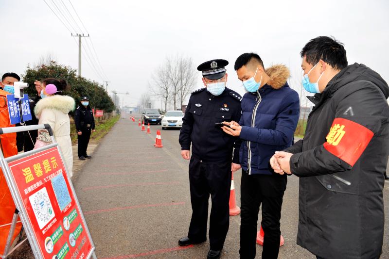 1月6日,民警在S223省道市界南商水县大武乡苦子王村执勤点服务返乡民工。元旦过后,商水县公安局在该县9个乡镇设立公安民警联合执勤点,全天候战斗在疫情防控一线,以实际行动全力以赴做好疫情防控工作,并随时接受过往司乘人员和人民群众的报警求助。③6