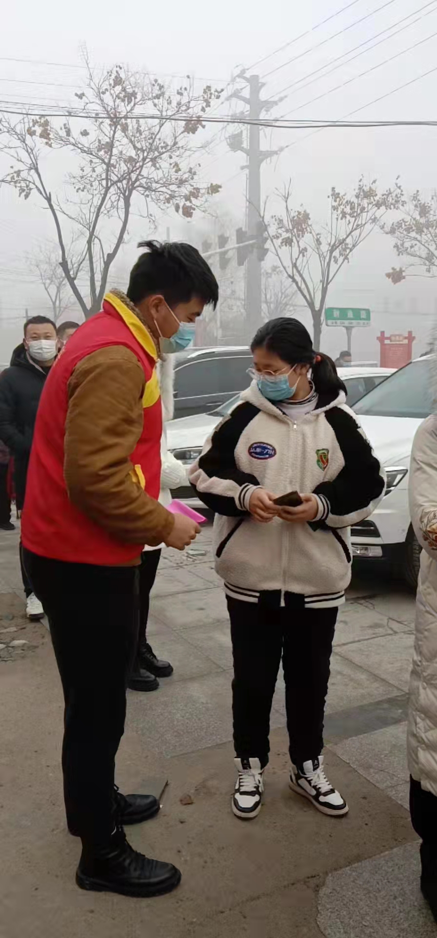 为用实际行动支持疫情防控,连日来,太康县妇幼保健院耳鼻喉科主任酒宗灵带领在河南师范大学读书放假回乡的儿子万坤宇,早上给隔离学生送餐,中午帮助社区查核酸,为疫情防控默默奉献,用实际行动诠释了志愿者的责任和担当。图为活动现场。③5