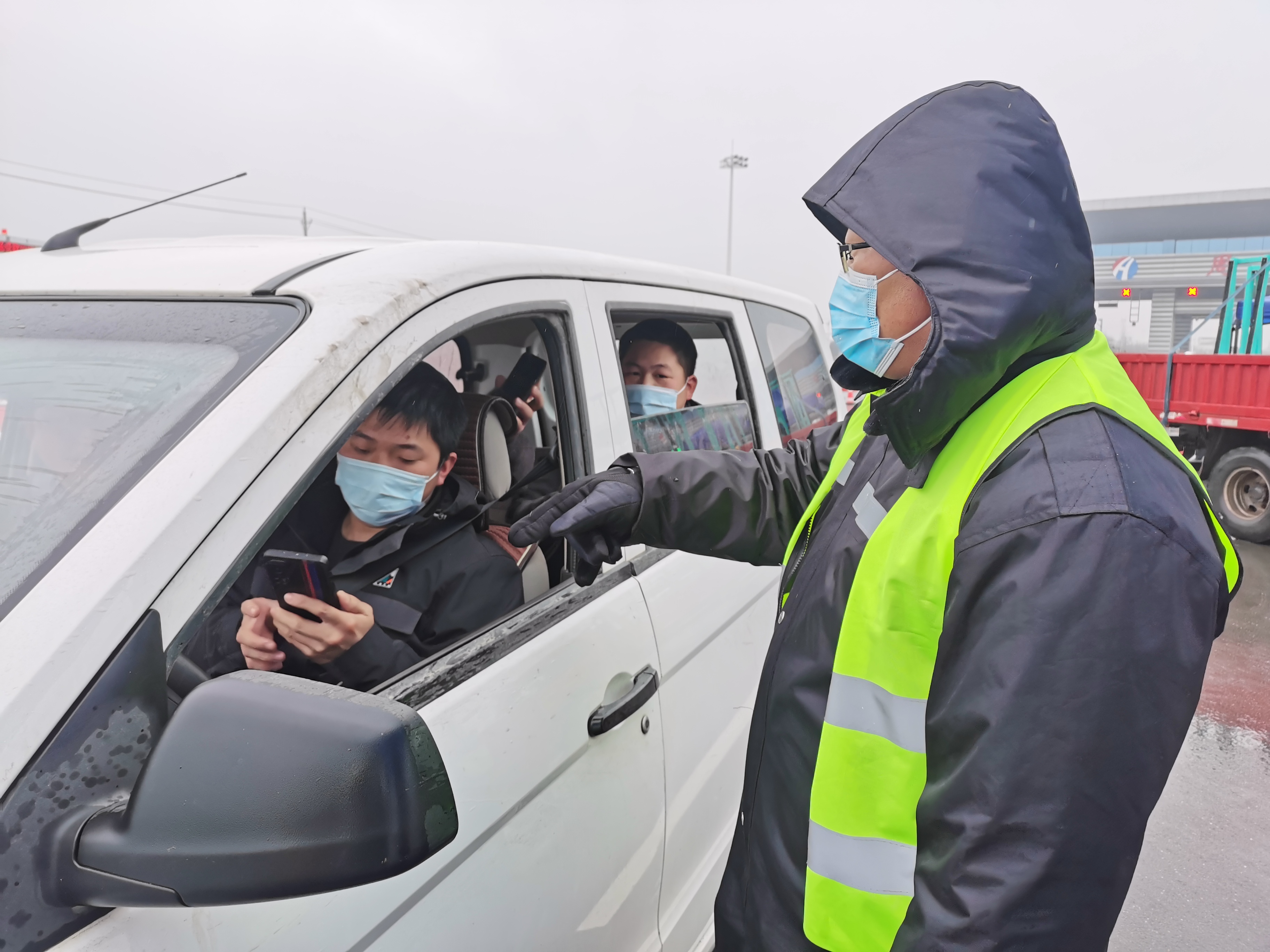 为严防疫情输入风险,守护全市人民的健康安全, 川汇区农业农村局干部职工连日来坚守在商南高速周口北站疫情防控卡点,查验驾乘车辆来(返)周人员的健康码、行程码和48小时内的核酸证明, 切实筑牢疫情防控安全防线。图为川汇区农业农村局干部在疫情防控卡点值勤。