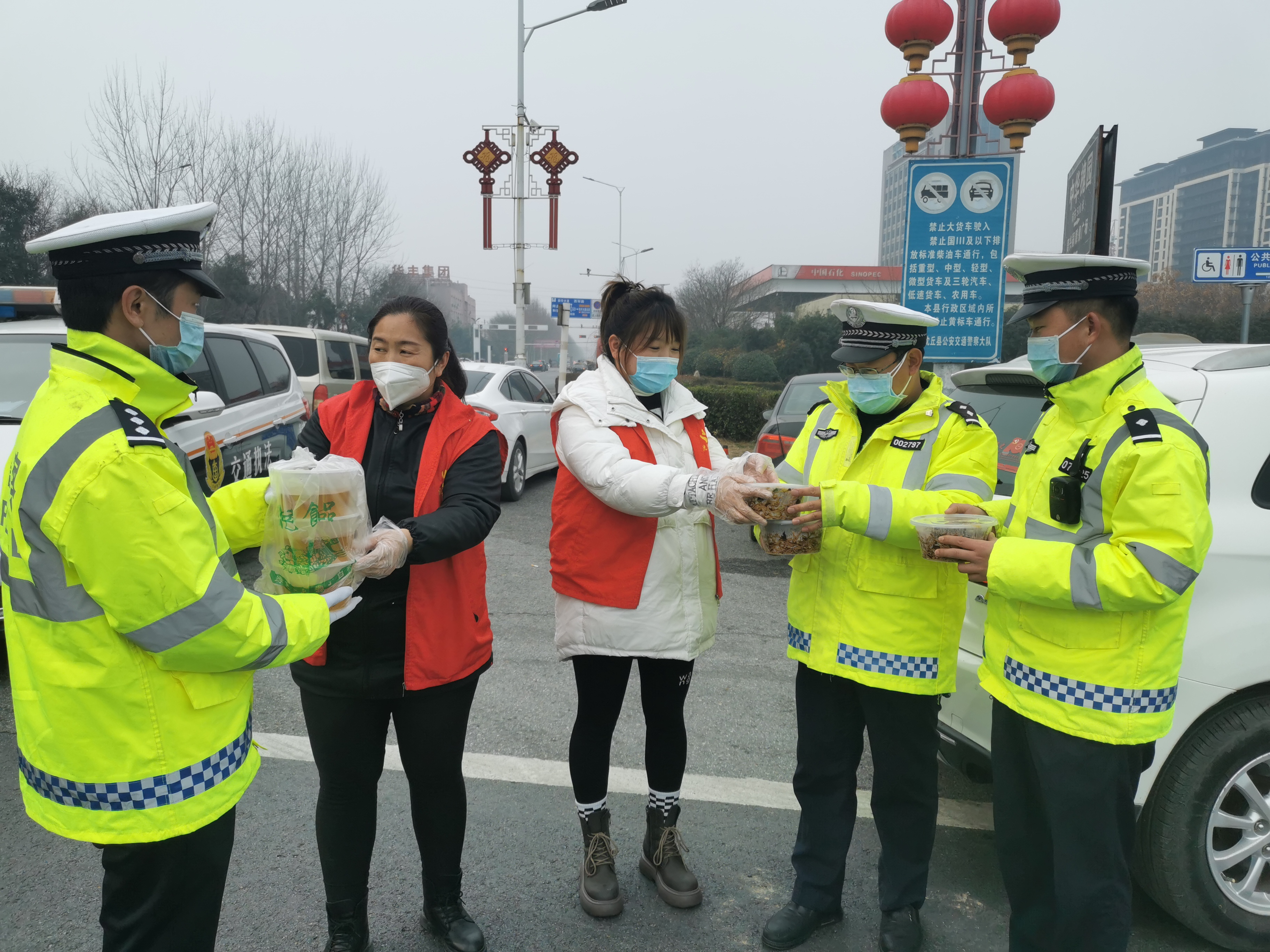 在锦华酒店、泰安路口、北城社区等疫情防控卡点,坚守卡点的同志吃着热乎乎的“老碗面”,似乎忘记了寒冷和疲劳。