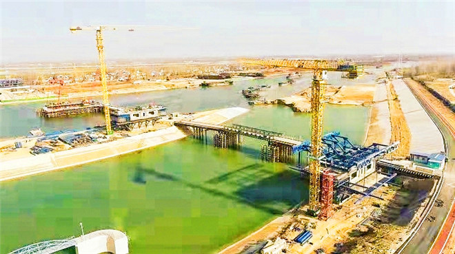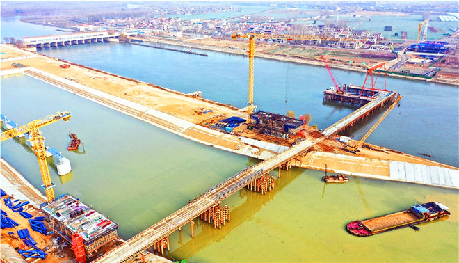 “咣咣咣,咚咚咚……”隆冬时节,寒气逼人,迎着落日余晖,记者走进该项目控制性工程的沙颍河特大桥施工现场,随处可见热火朝天的建设场面。浇筑箱梁,搭设架体,挂篮悬浇,索塔施工……忙碌不停的项目建设者和往来穿梭的工程车辆,正生动地演绎着全力推进项目建设的“速度与激情”。