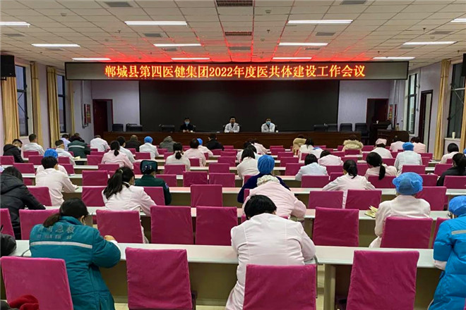 1月11日晚,郸城县第四医疗健康服务集团召开2022年度医共体建设工作会议,谋划推进2022年度医共体建设工作,为守护人民群众生命安全和身体健康贡献力量。