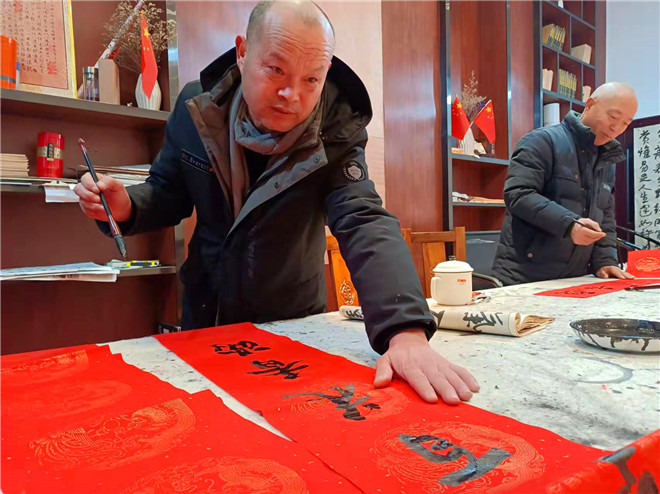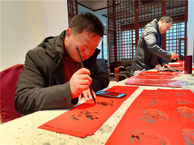 “新春火红的春联寄托着人们对新年的美好愿望,也将成为春节期间家家户户门口的一道独特风景。”鹿邑县文联主席王亚飞说,和往年送春联活动不同的是,今年县书法家协会给大家送上新春祝福的同时,格外重视做好疫情防控工作,为了防止人员聚集,降低疫情传播风险,他们及时调整春节送春联活动方案,采用“先写后送”的活动形式,将写好的春联送到防疫一线,委托防疫人员将春联送到隔离的回乡群众手中,把党的关怀问候和新春祝福送到千家万户。②8