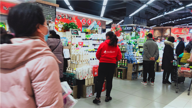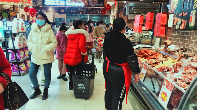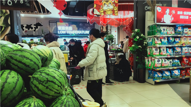 春节将至,我市各大超市处处是浓浓的年味。1月26日,记者走进我市中心城区各大超市发现,超市内熙熙攘攘,生鲜果蔬区域消费者尤多,绝大多数消费者自觉佩戴口罩。②11