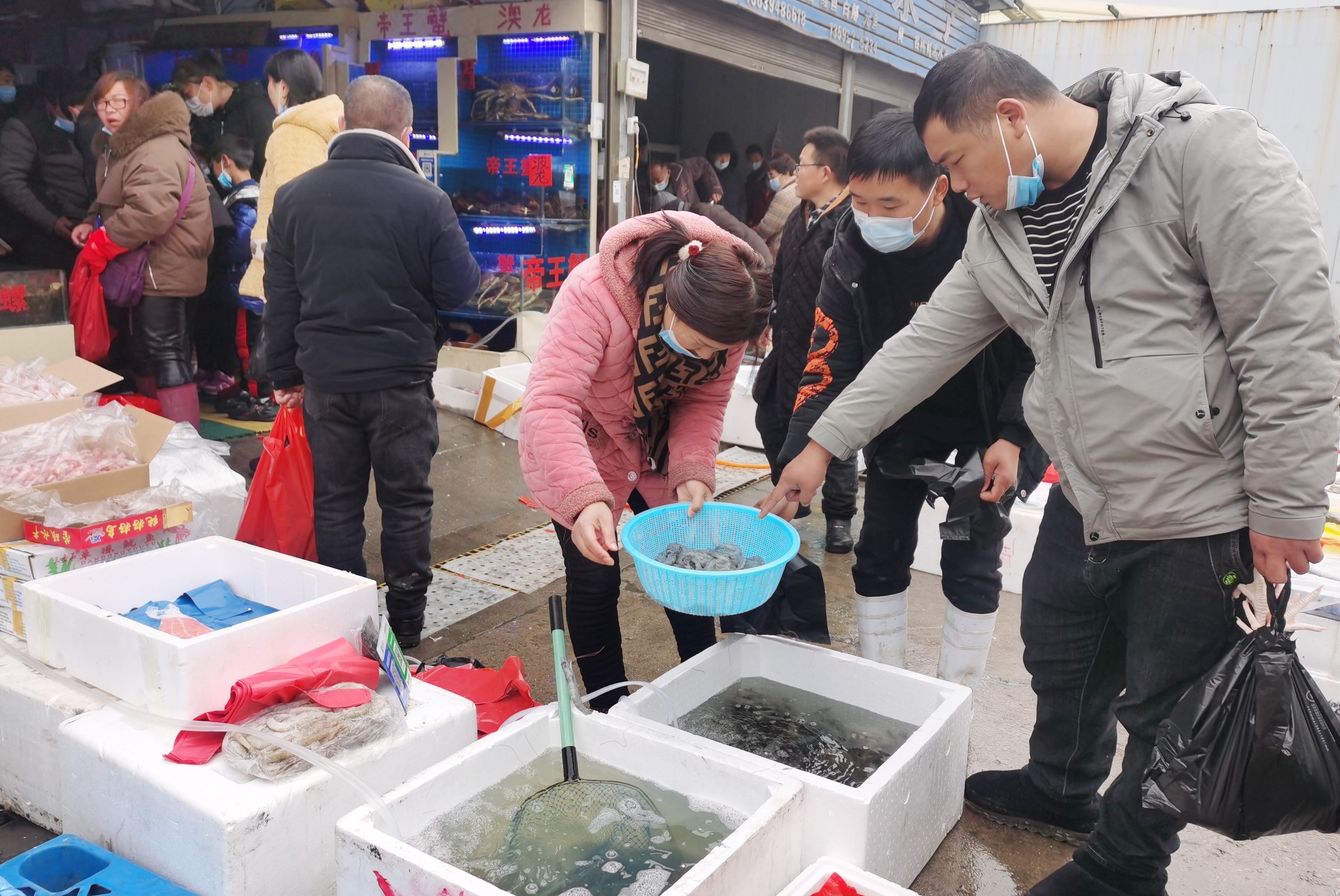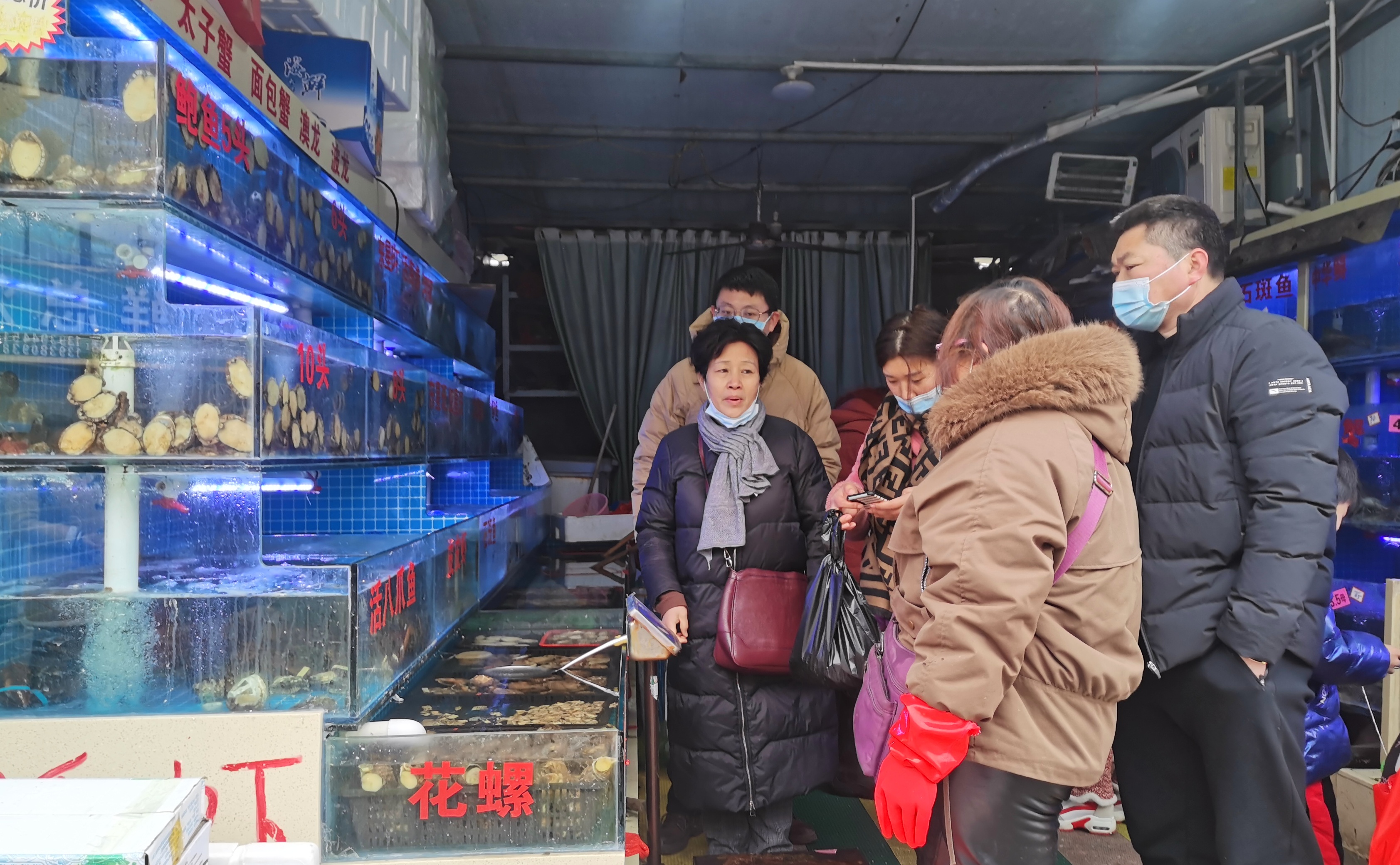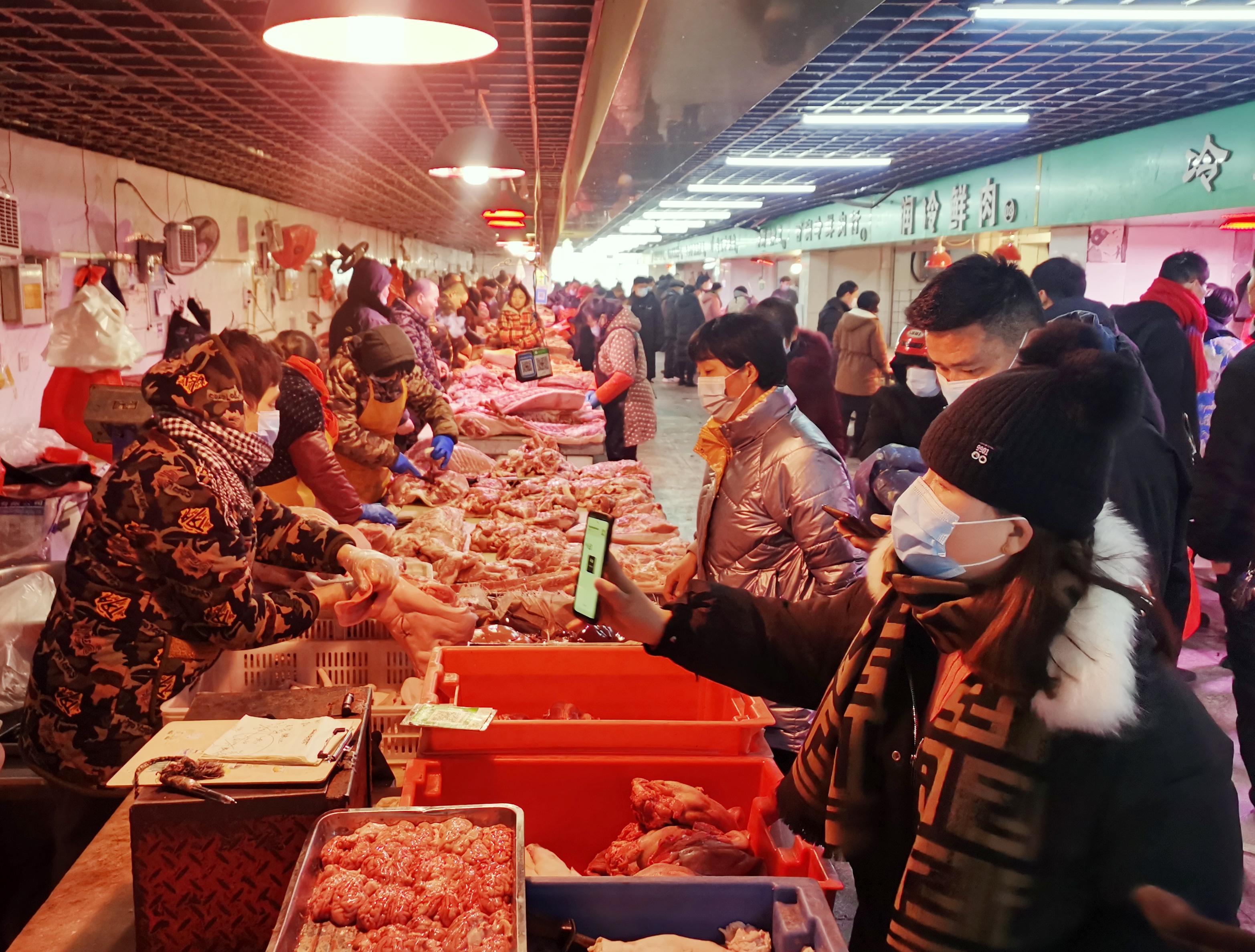 1月27日,黄淮大市场里人来人往,前来选购的市民络绎不绝。 春节临近,市民置办年货的热情越来越高,黄淮大市场内年味十足,蔬菜、水产、熟食、副食品等分区鲜明,各种商品供应充足,呈现购销两旺态势。②11