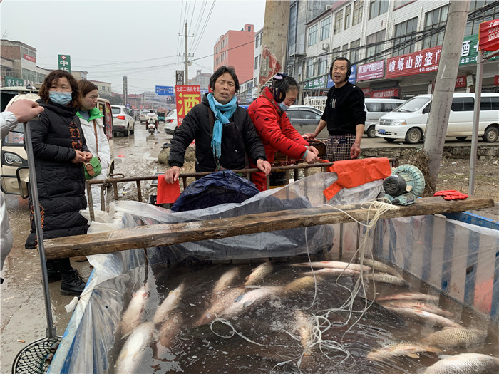 固墙镇集市上活鱼摊位生意火爆