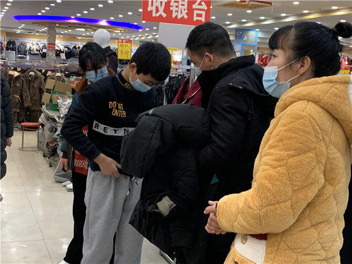 父母在给孩子挑选新衣服