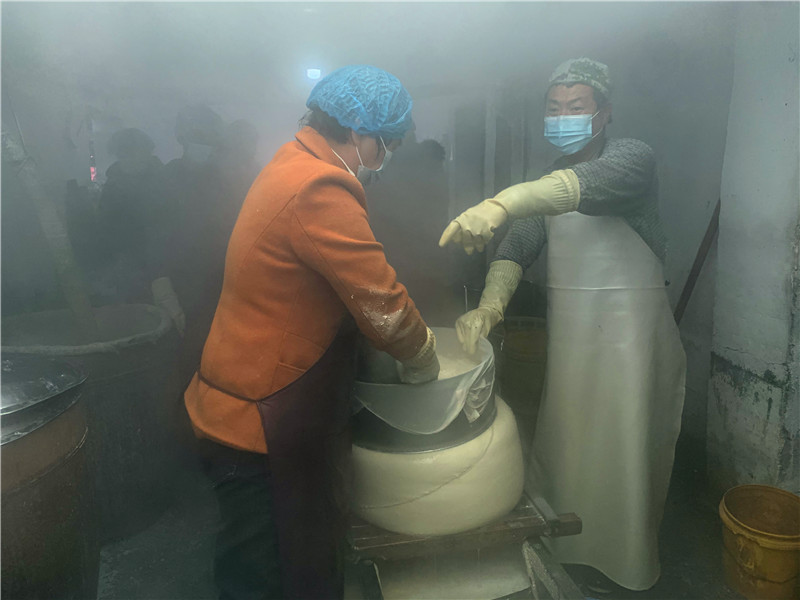 一家三代经营的老朱家豆腐店远近闻名。“从爷爷那辈起,家里就开始做豆腐生意,我从小耳濡目染,现在豆腐生意由父亲主营,我负责打下手。只要顾客喜欢吃,我们就会一直做下去。”老朱家豆腐第三代传人朱永博说,他们一家人一年到头都在忙着做豆腐,只有大年初一到初五才有空休息。老朱家豆腐店平常做豆腐一家人全上阵,临近年关一天要做四五十盒豆腐,每一盒豆腐80斤左右,亲戚朋友在家闲着没事的都来帮忙了。