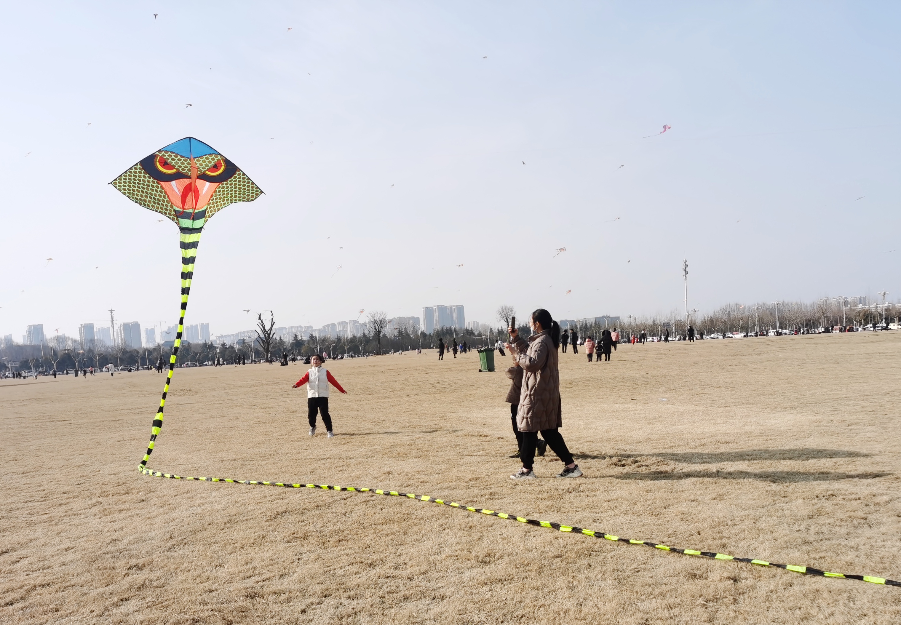春节七日小长假期间,恰逢立春。周口市阳光明媚,不少市民带着孩子到户外放风筝,在户外进行亲子活动,享受假日的温暖阳光,其乐融融。