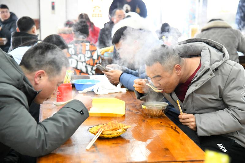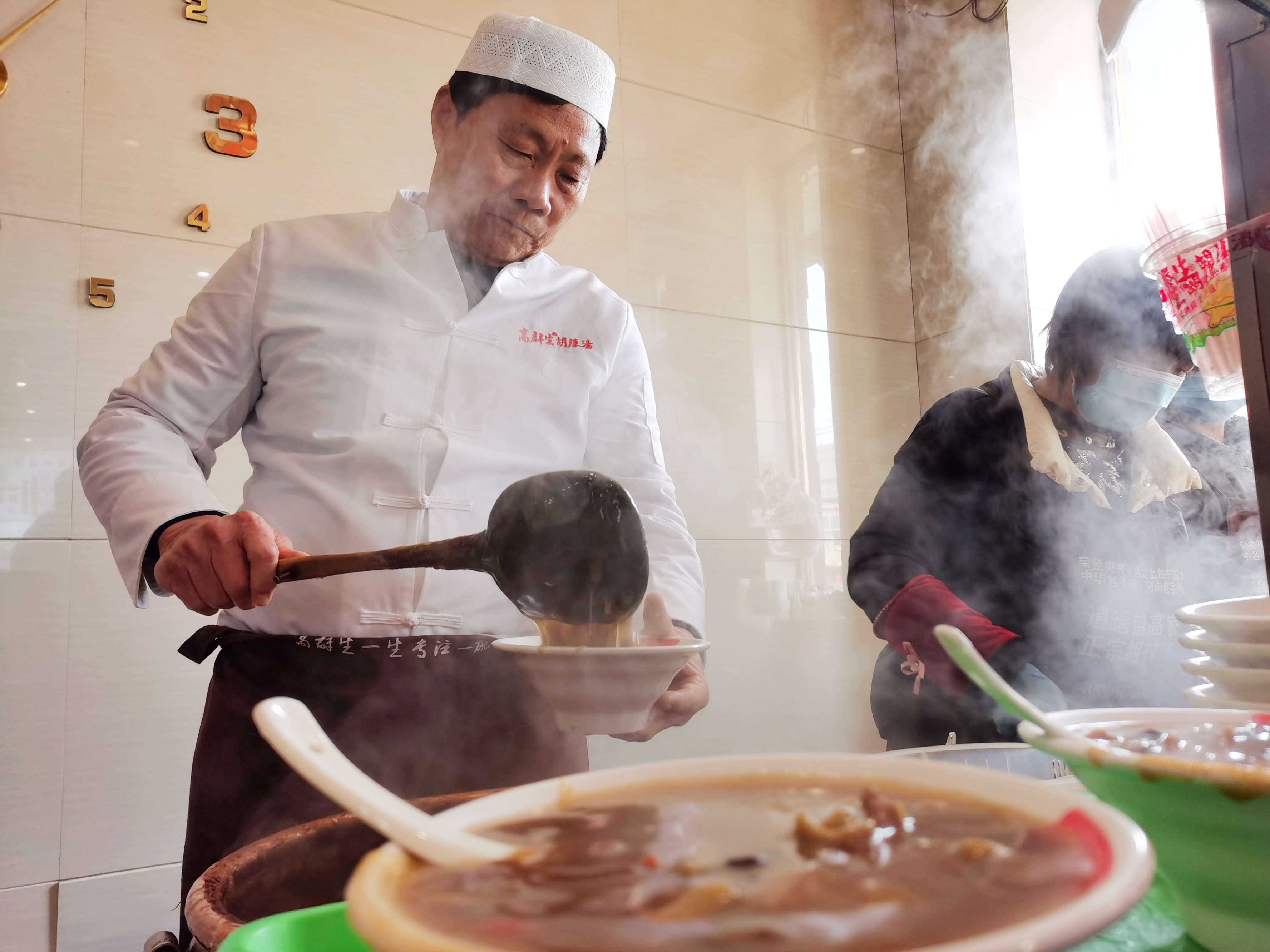 在老佟家胡辣汤店,赶在新年即将到来时喝汤的老百姓