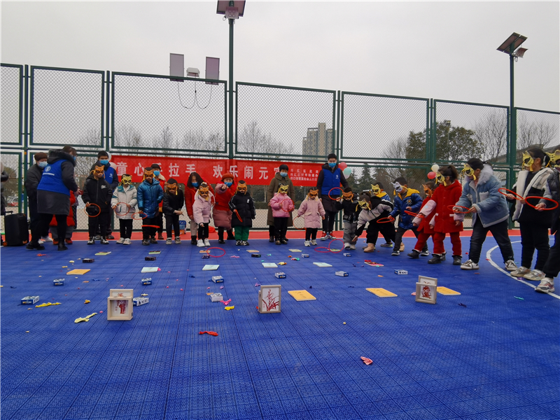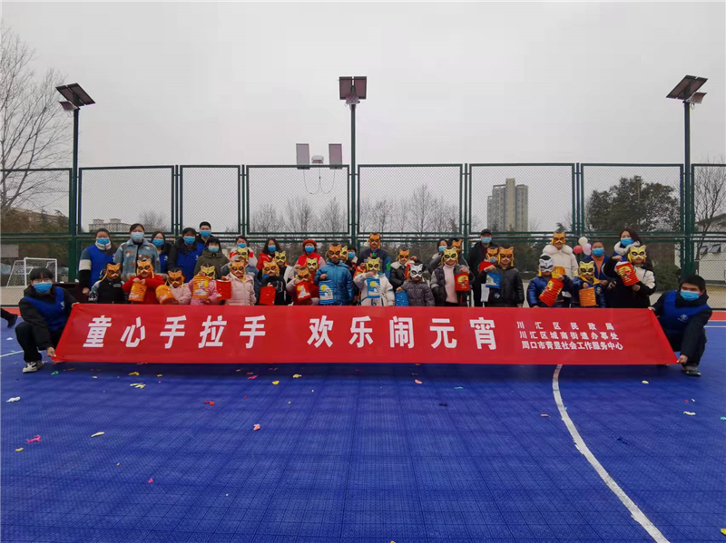 踩气球、套圈、猜灯谜……2月15日是元宵节,川汇区城南街道办事处联盟新城社区广场上人声鼎沸,热闹非凡,一群戴着老虎面具的“虎娃”正在参加由川汇区民政局、川汇区城南街道办事处、周口市青昱社会工作服务中心举办的“童心手拉手 欢乐闹元宵”活动。