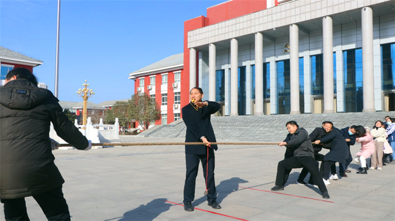 在拔河比赛中,校党委书记、常务副校长孟庆武亲自当裁判,各支部代表队都派出最强阵容,齐心协力,勇争第一。随着裁判的一声哨响,比赛正式开始,各位参赛队员双手紧握长绳,压低重心、咬紧牙关,铆足劲拼命往后拉。比赛过程中,参赛队员心往一处想,力往一处使,齐心协力、勇往直前,用汗水诠释了永不放弃、永不气馁的拼搏和团队精神,激发了携手奋进、勇争一流的热情。