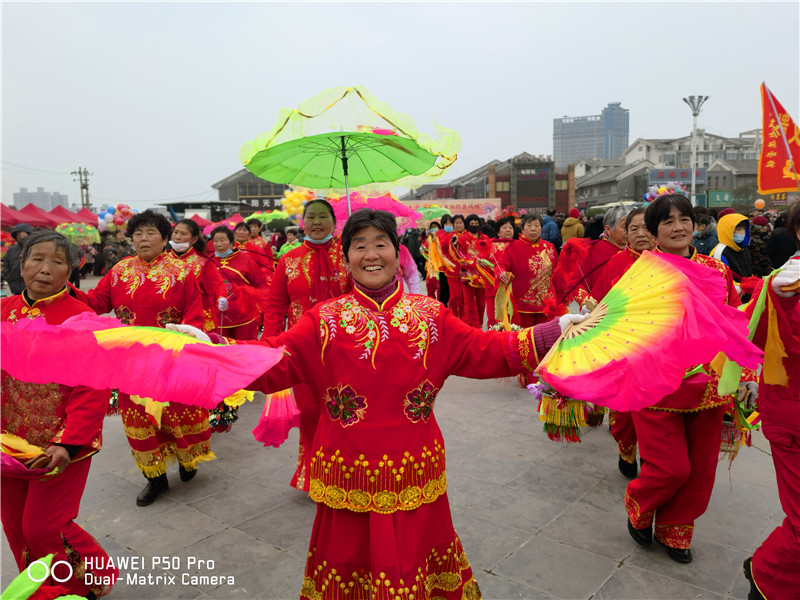元宵节期间,具有浓郁地方色彩的民间文化活动在周口城乡集中展现,彰显了“道德名城 魅力周口”的丰富内涵。图为市民在关帝庙文化广场表演喜庆的担经舞。(李瑞英/摄影)③10