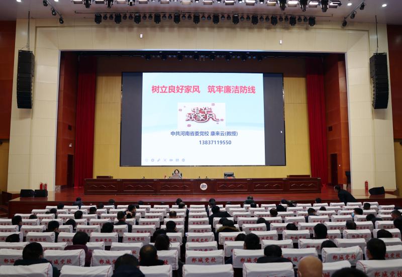 2月18日下午,郸城县举行“学习强郸”大讲堂第四讲,邀请中共河南省委党校教授、研究生导师康来云以《树立良好家风,筑牢廉洁防线》为题作专题辅导报告。李全林、王中红、李建军、王伟等县处级领导与广大党员干部共同聆听专题辅导报告。县委常委、宣传部长、副县长刘锋磊主持大讲堂。