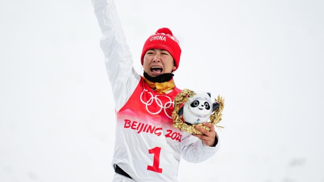 15日,在北京冬奥会单板滑雪男子大跳台决赛中,中国选手苏翊鸣夺得金牌。这是他在本届冬奥会上继坡面障碍技巧夺银后的第二枚奖牌。