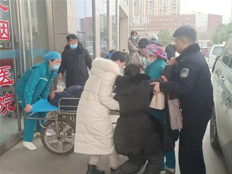 鹿邑县公安局交警大队城区二中队队长孙鑫介绍,当时他正和其他队员在县城西关侯庄桥路口执勤,有群众求助,称其家人突发疾病,呼吸困难。他们迅速上前查看,由于此时正是车流高峰时间段,若等120救护车,恐怕会耽搁时间。紧急情况下,孙鑫一边安排人员疏导交通,一边协同热心群众将患者抬上警车,火速赶往医院。